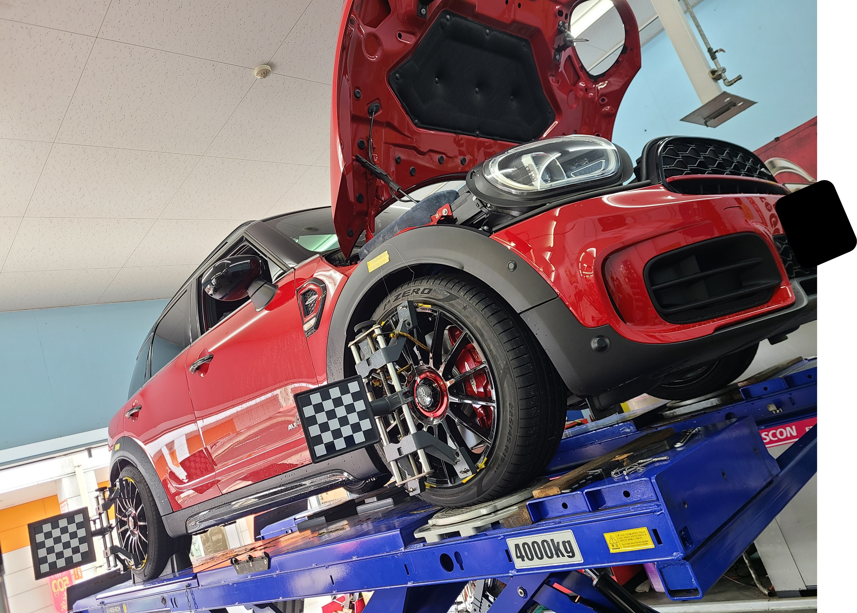 本日、Mini クロスオーバーのアライメント調整の作業をさせていただきました(; ・`д・´)