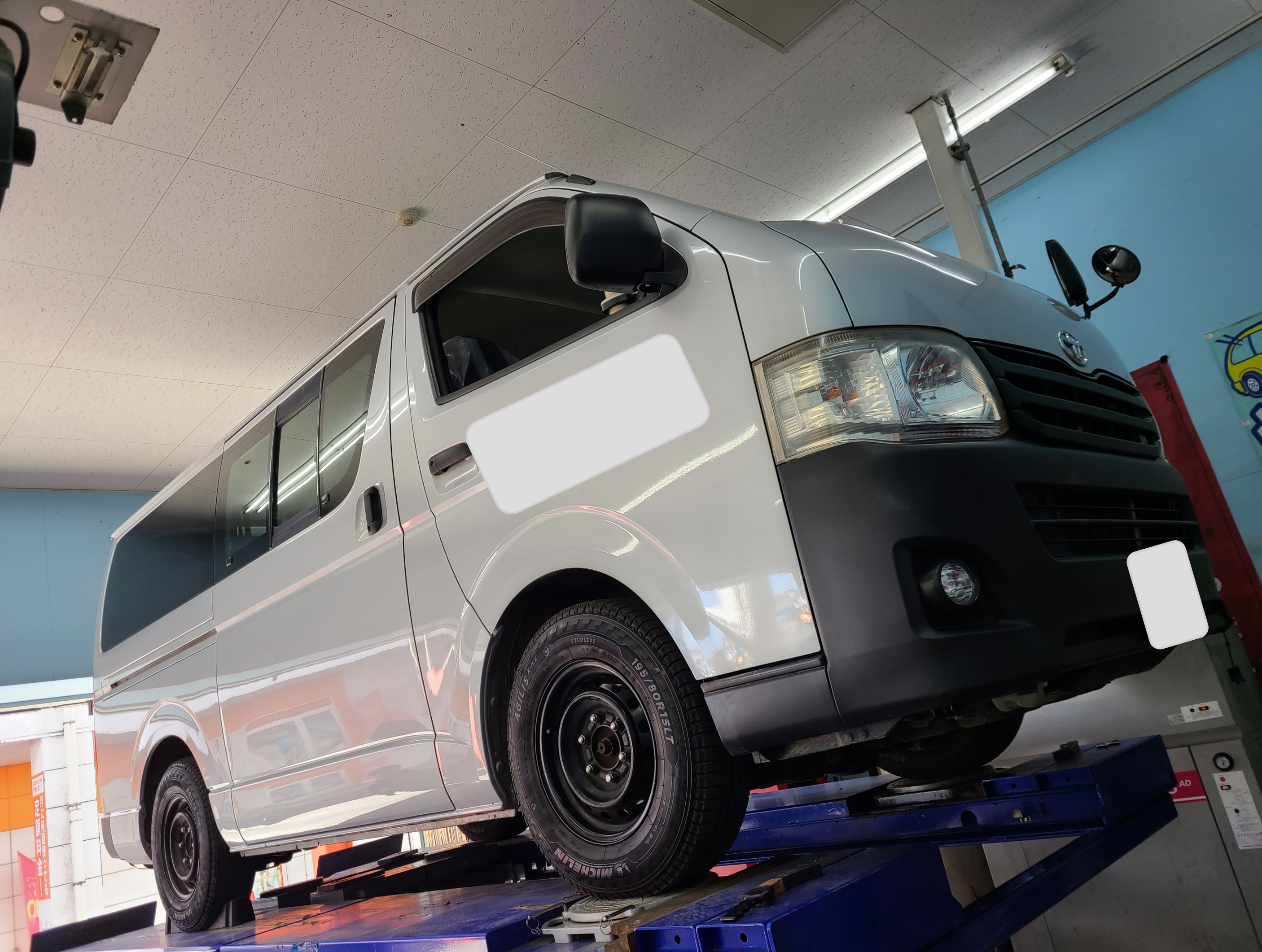 レジアスエースにお乗りのオーナー様よりアライメント調整の作業を承りましたΣ(・ω・ノ)ノ!