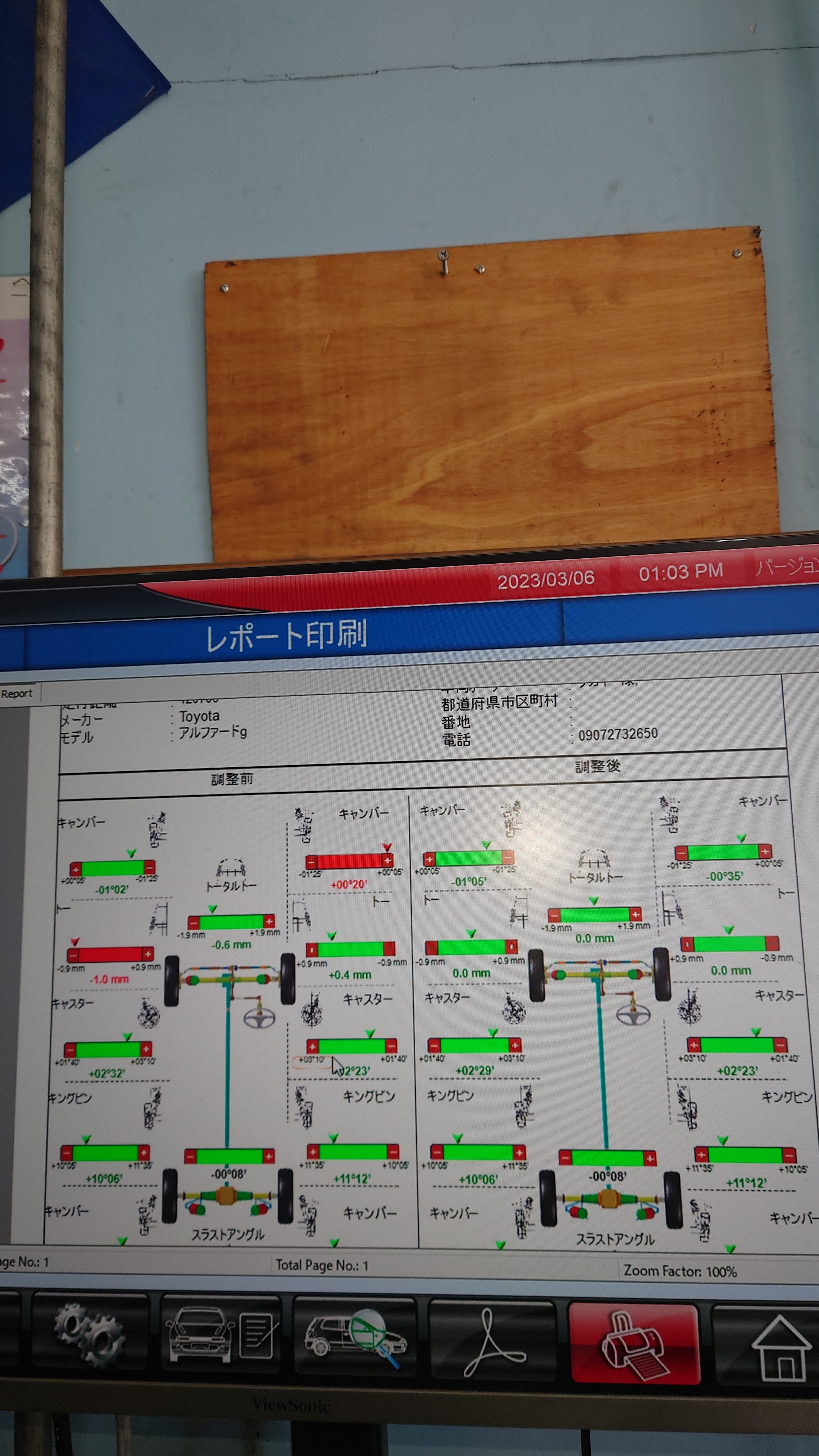 只今、電話のお問い合わせからアルファードのアライメント調整が