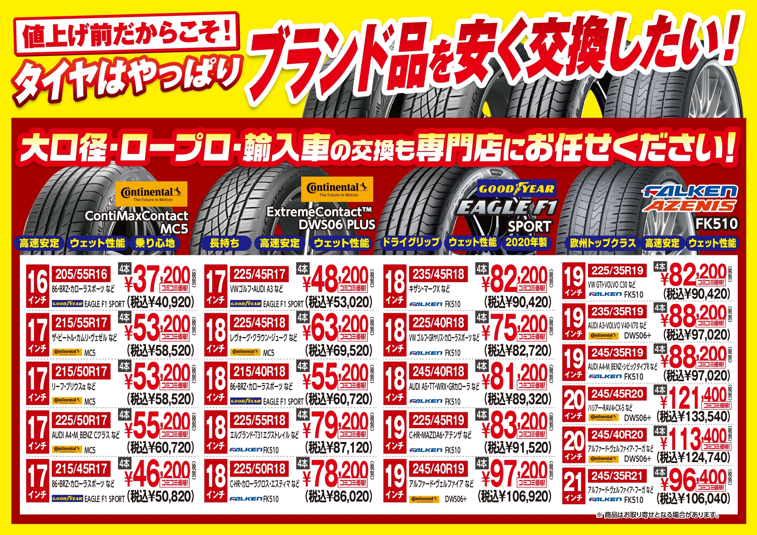 大口径・ロープロ・輸入車タイヤ特売品‼