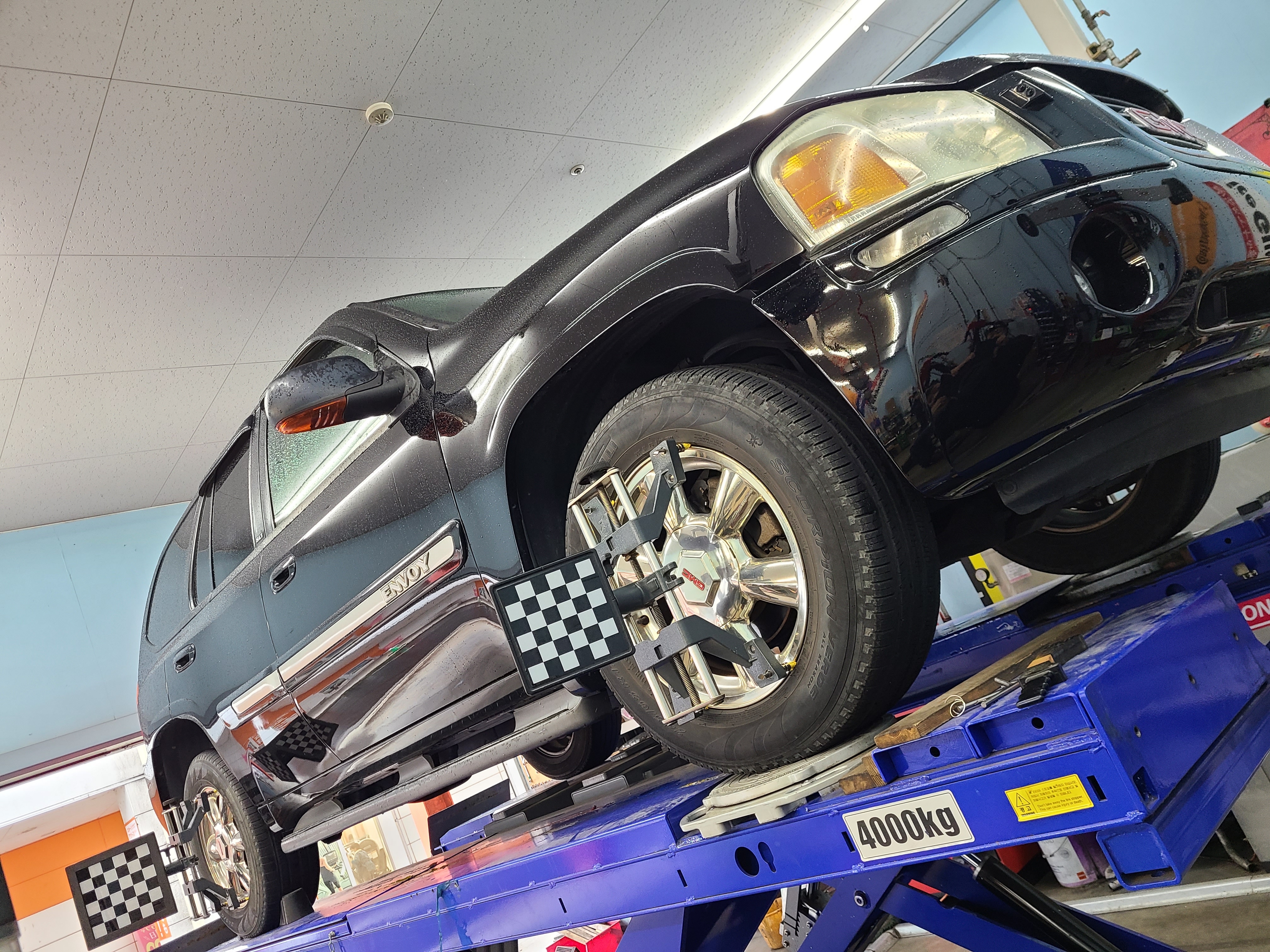 本日、GMC エンボイのアライメント調整の作業をさせていただきました(; ・`д・´)