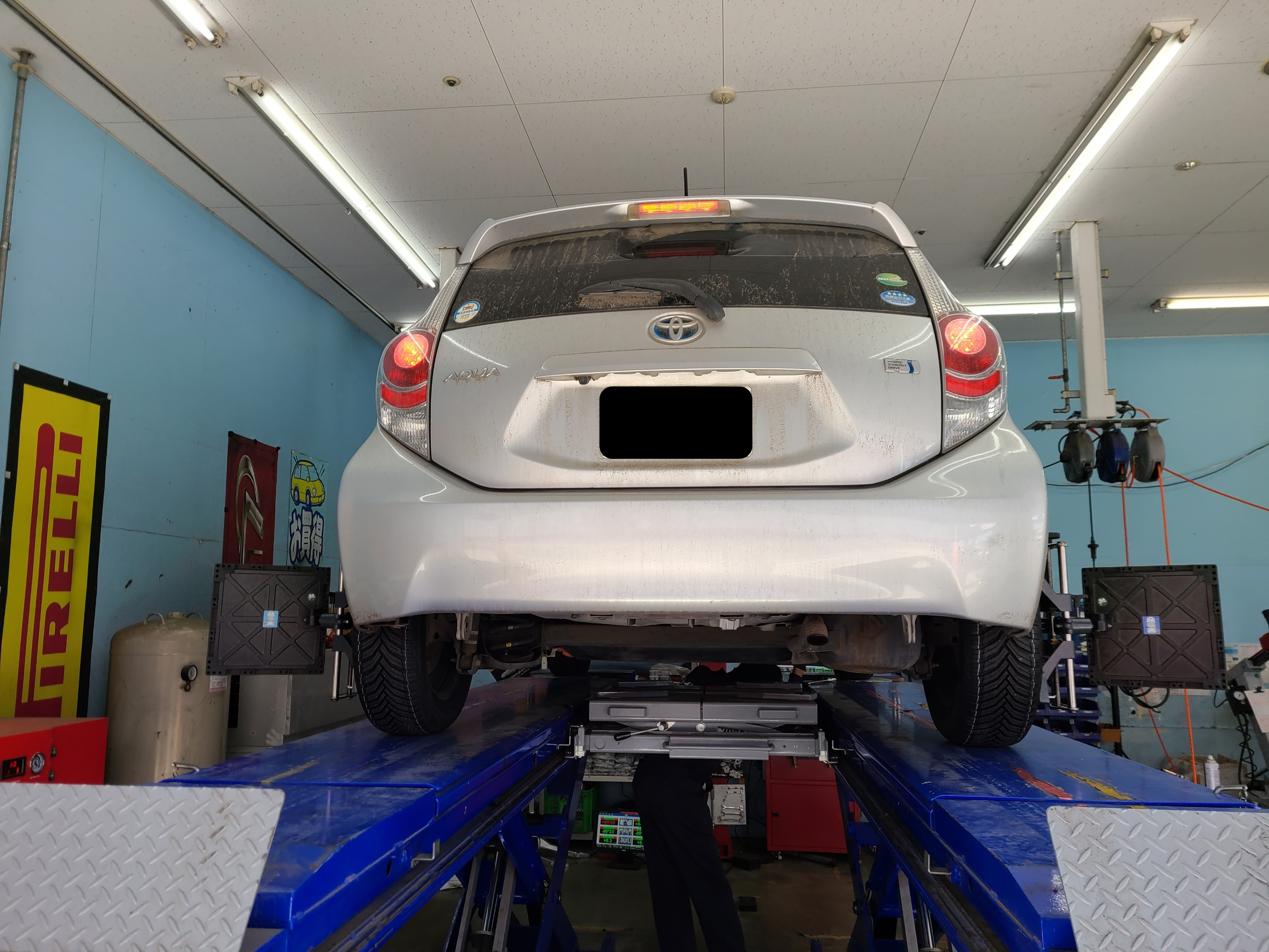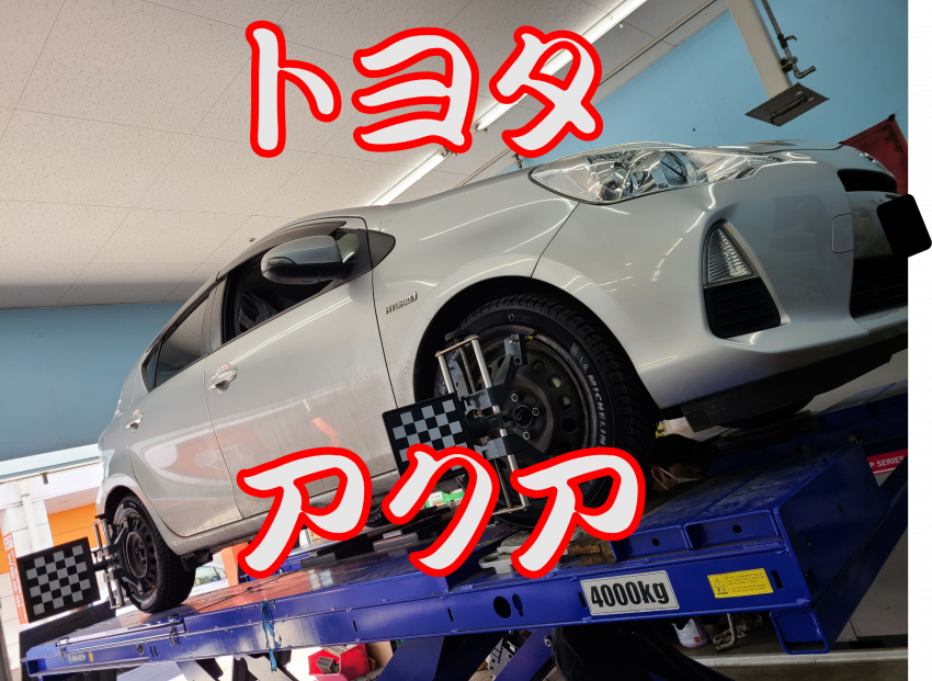 本日、トヨタ アクアのアライメント調整の作業をさせていただきました(; ・`д・´)
