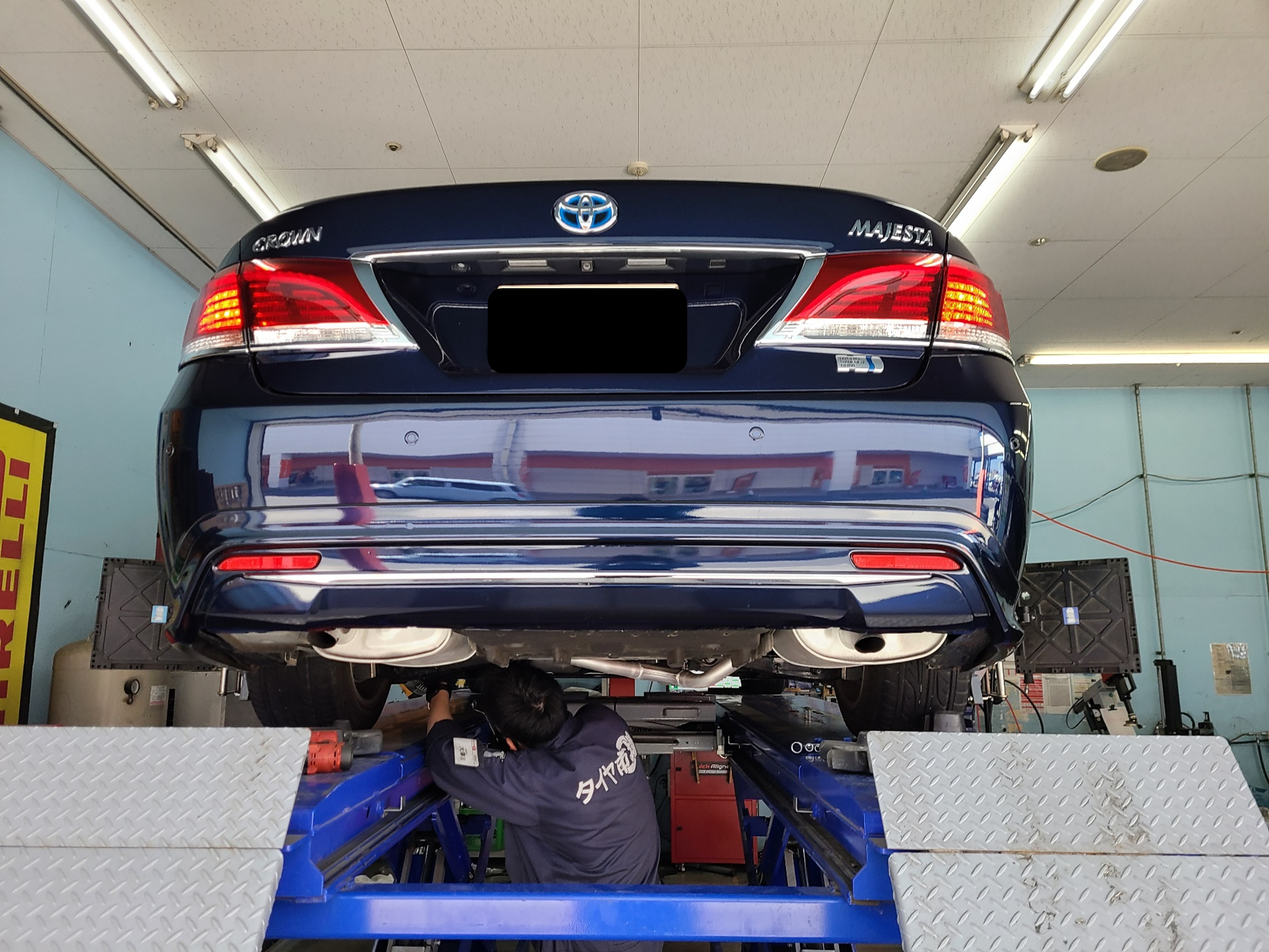本日、トヨタ クラウン マジェスタのアライメント調整の作業をさせていただきました(; ・`д・´)