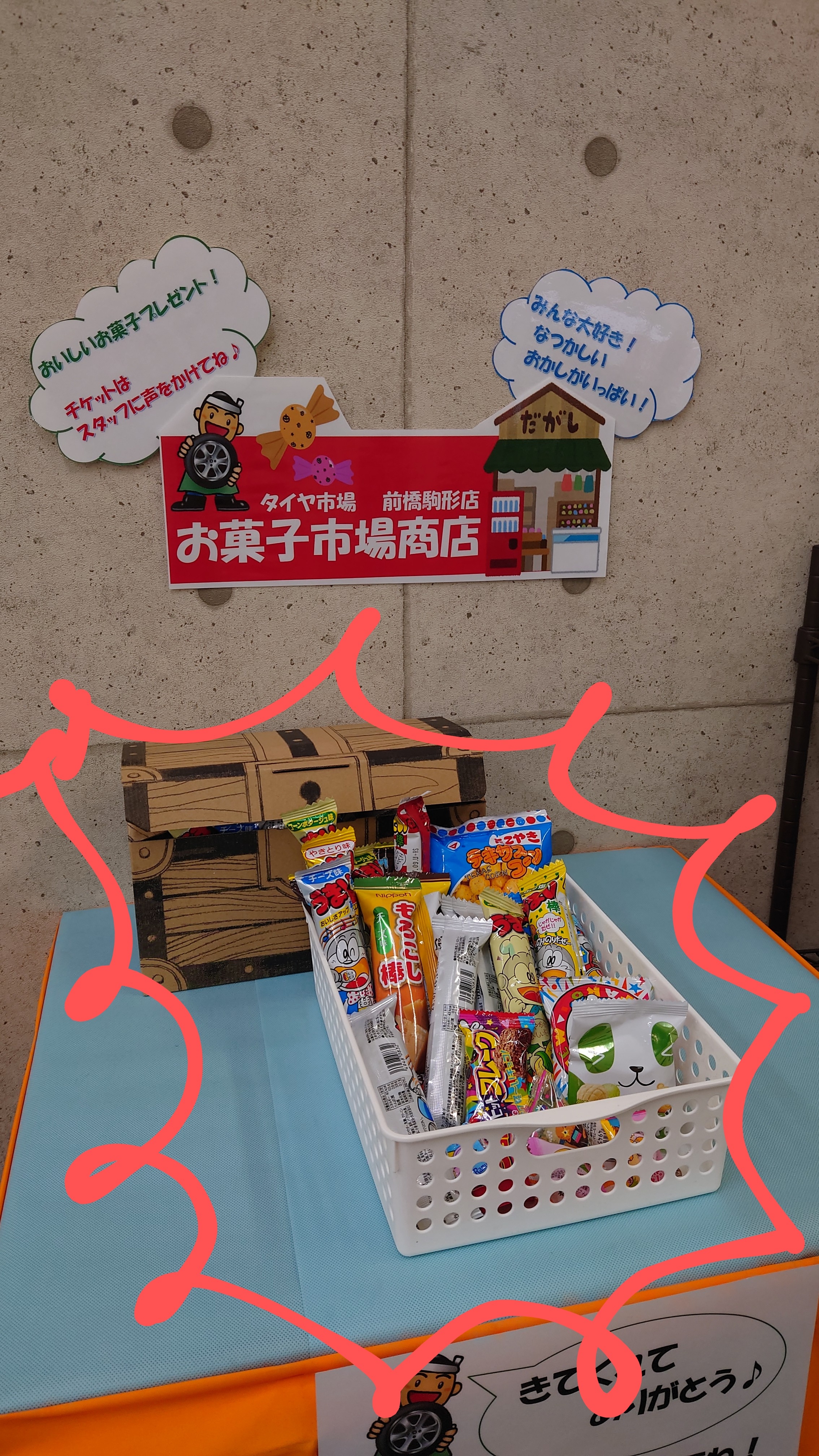お子様連れのお客様にはお菓子を差し上げております。