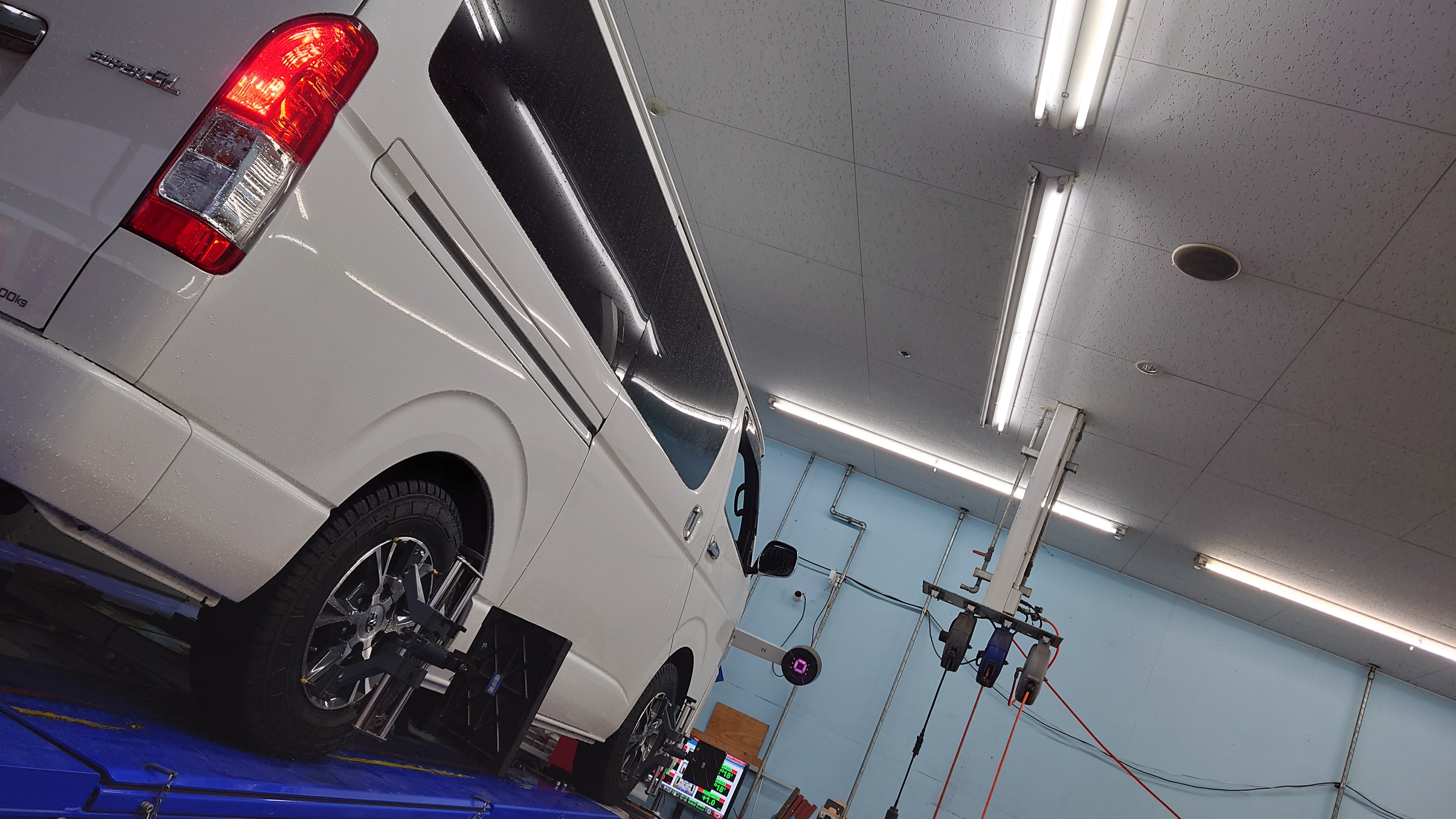 本日最初の奮闘記はハイエースのアライメント調整です。