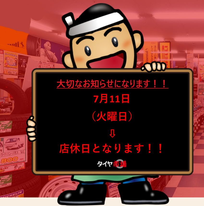 明日7/11火曜日は休日となっております!