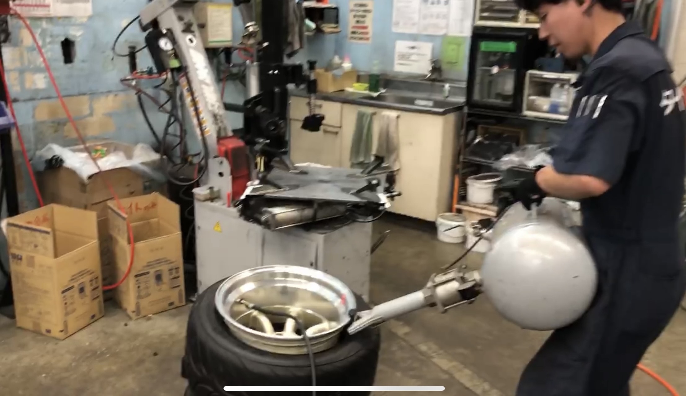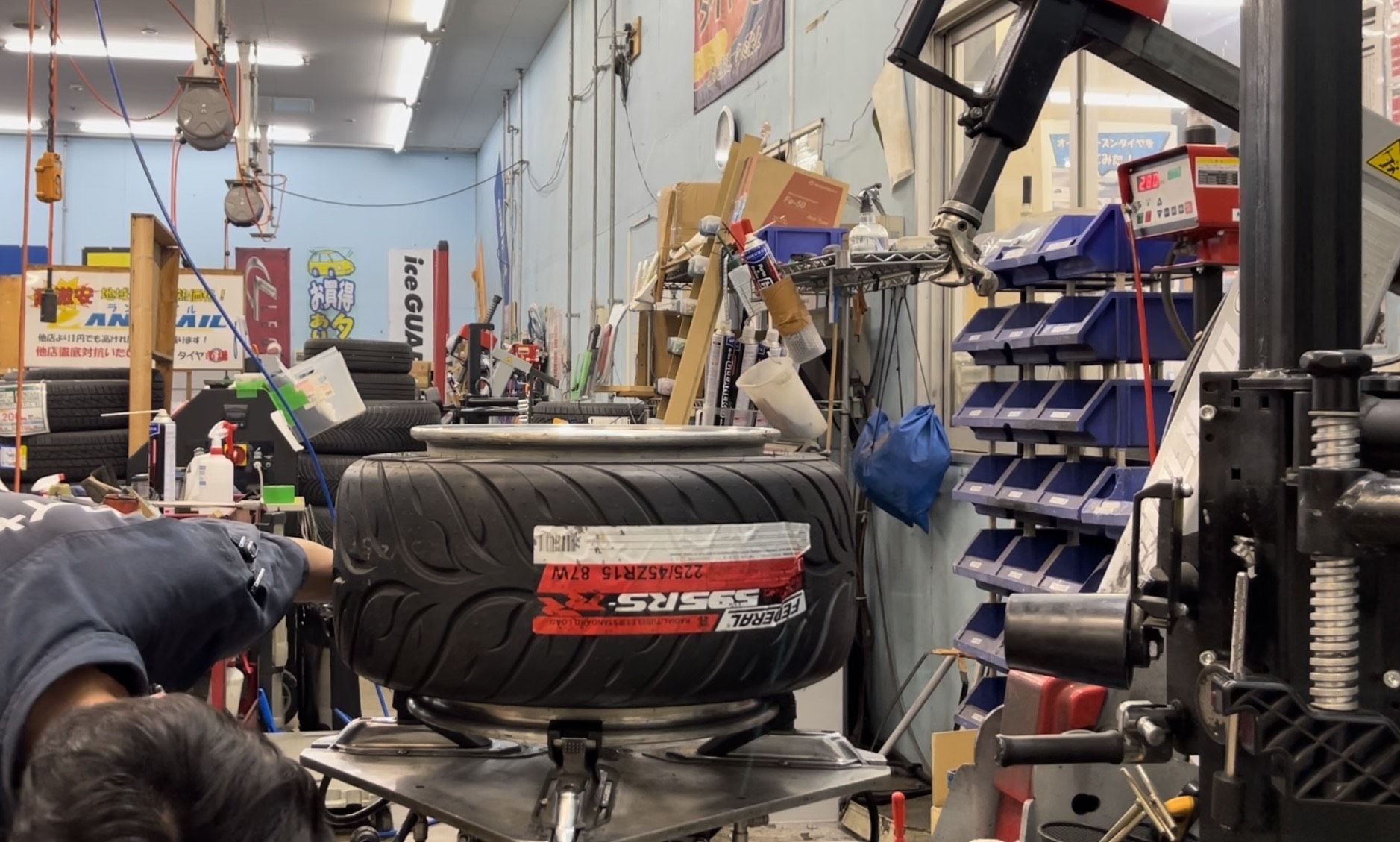 11Jに225/45R15を組み込む為、癖付けをしている作業写真になります。