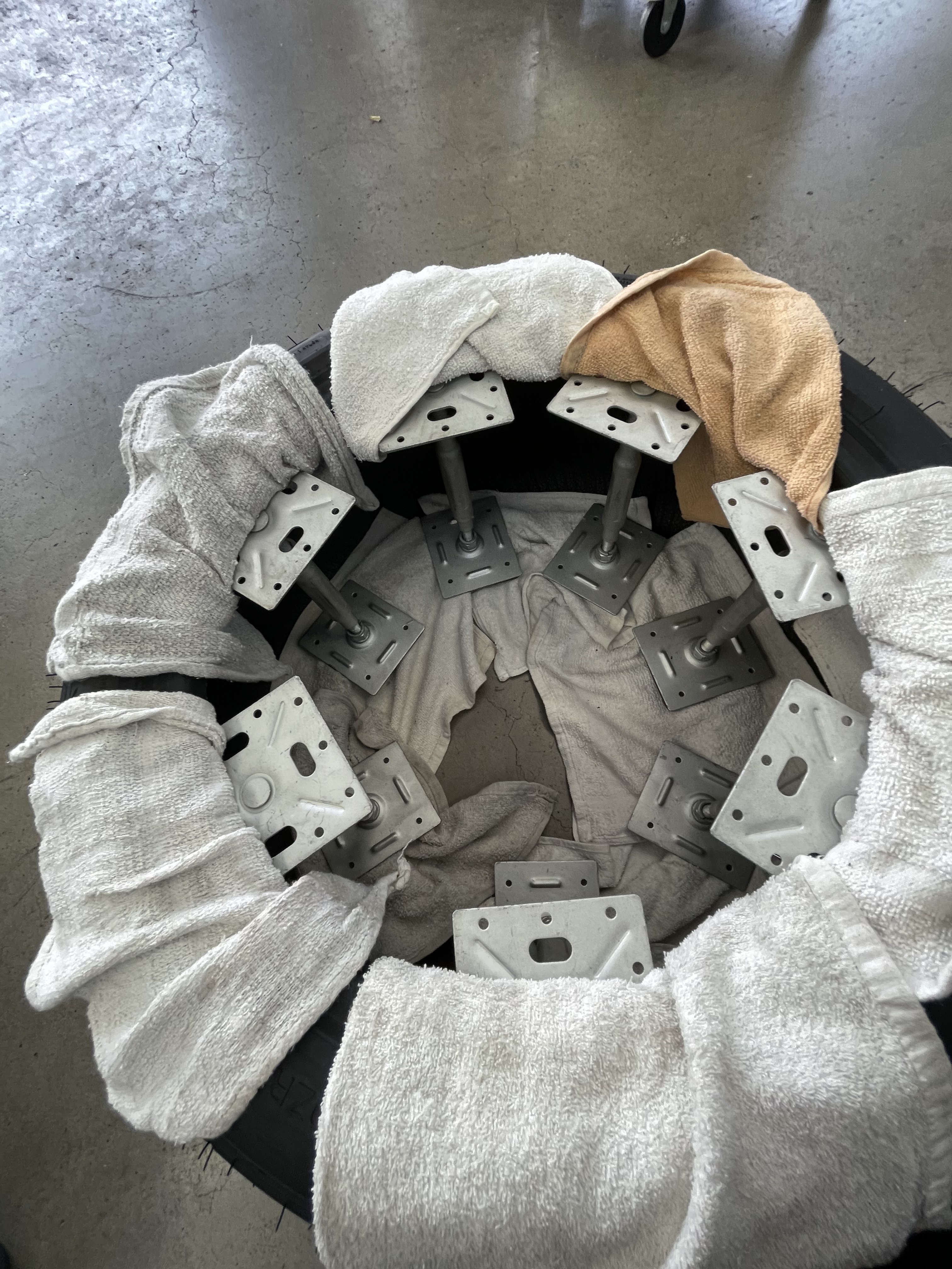 これをタイヤに挟んでタイヤをていくとこんな感じになります。