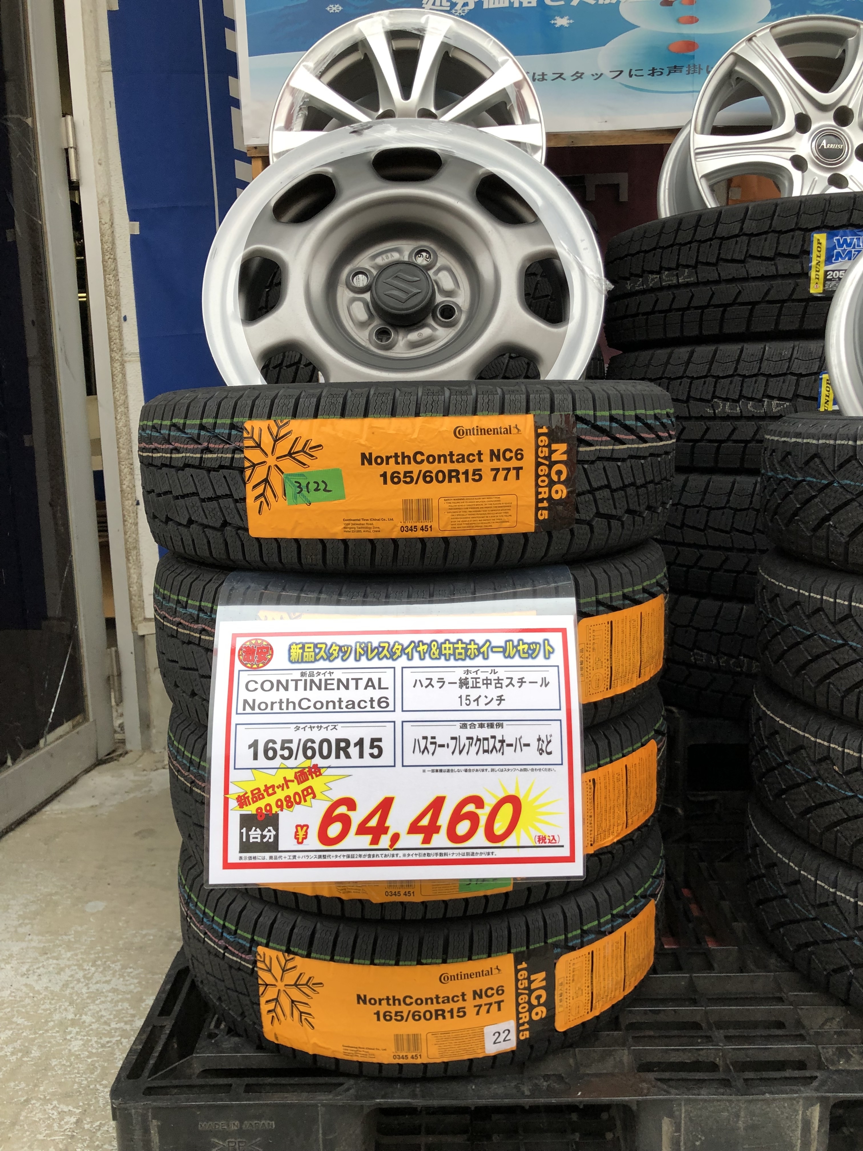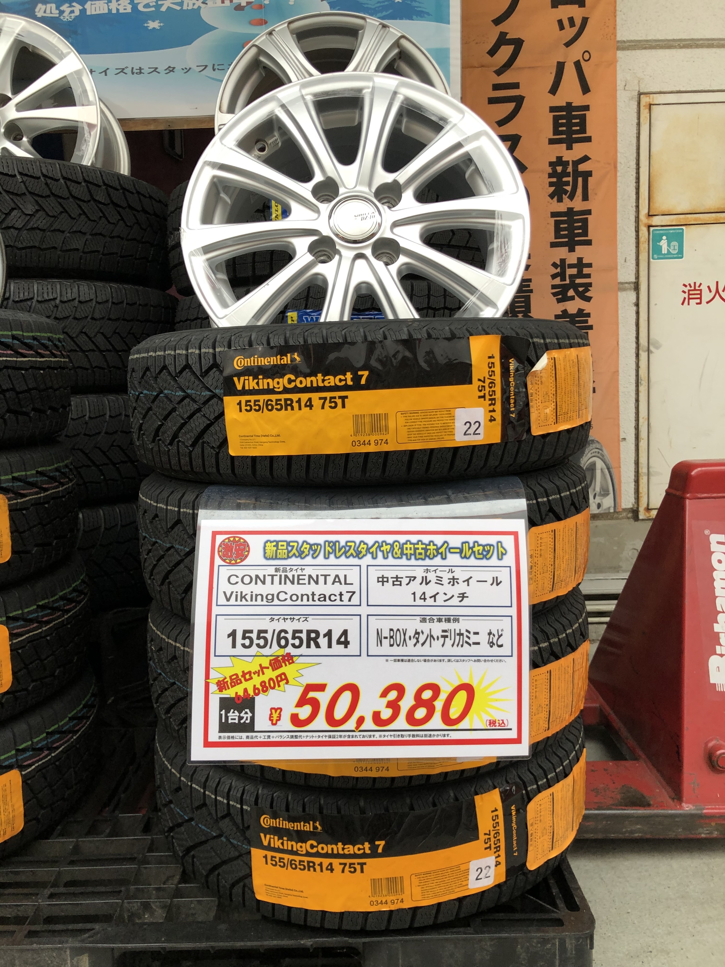 コンチネンタル社製の最上位モデルのスタッドレスタイヤ155/65R14が中古のホイールとのセットで・・・