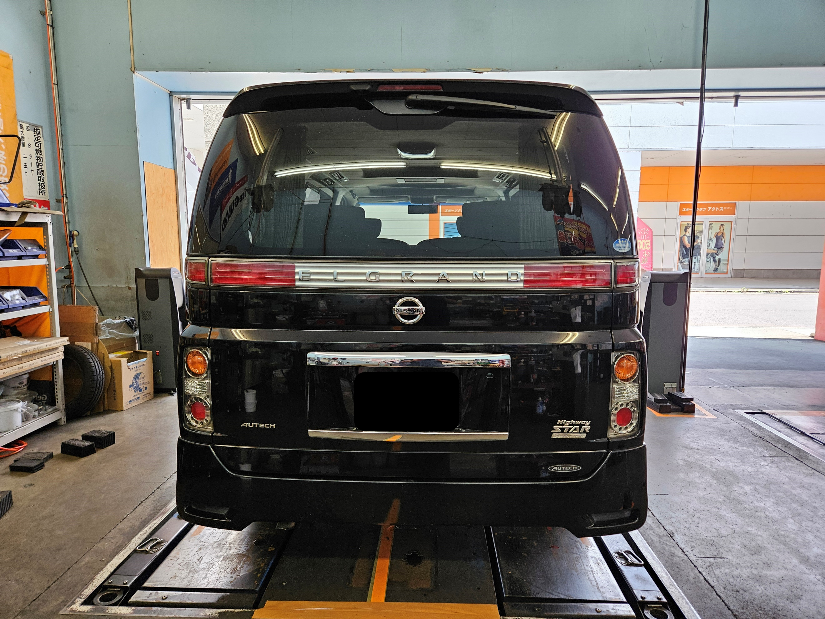 ニッサン✖エルグランドでアライメント調整 タイヤ市場駒形店!!ディーラーの半額以下で!! 群馬県内外・前橋・桐生・高崎・藤岡・伊勢崎・太田・利根・沼田・吾妻.エリアにお住いの方、その他の地域にお住いの方も是非!