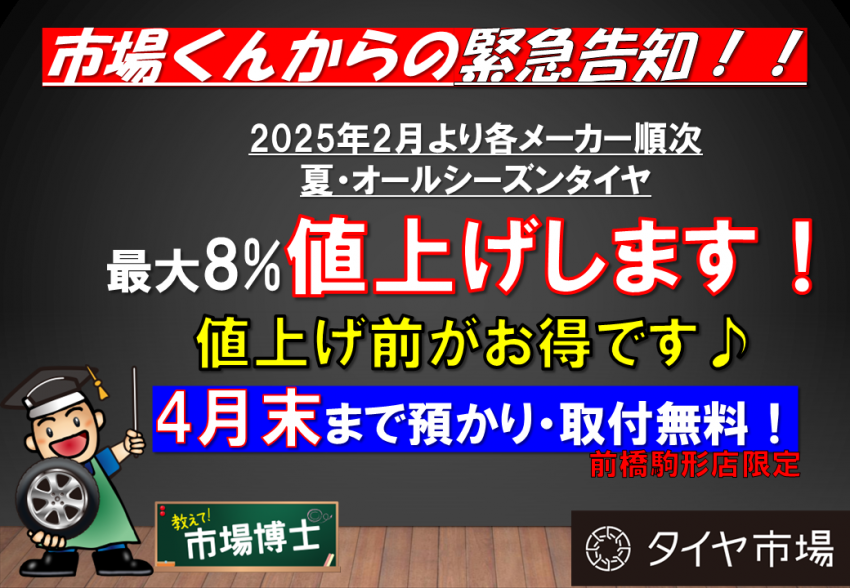 こんにちは!タイヤ市場前橋駒形店、今年初ブログとなります!
