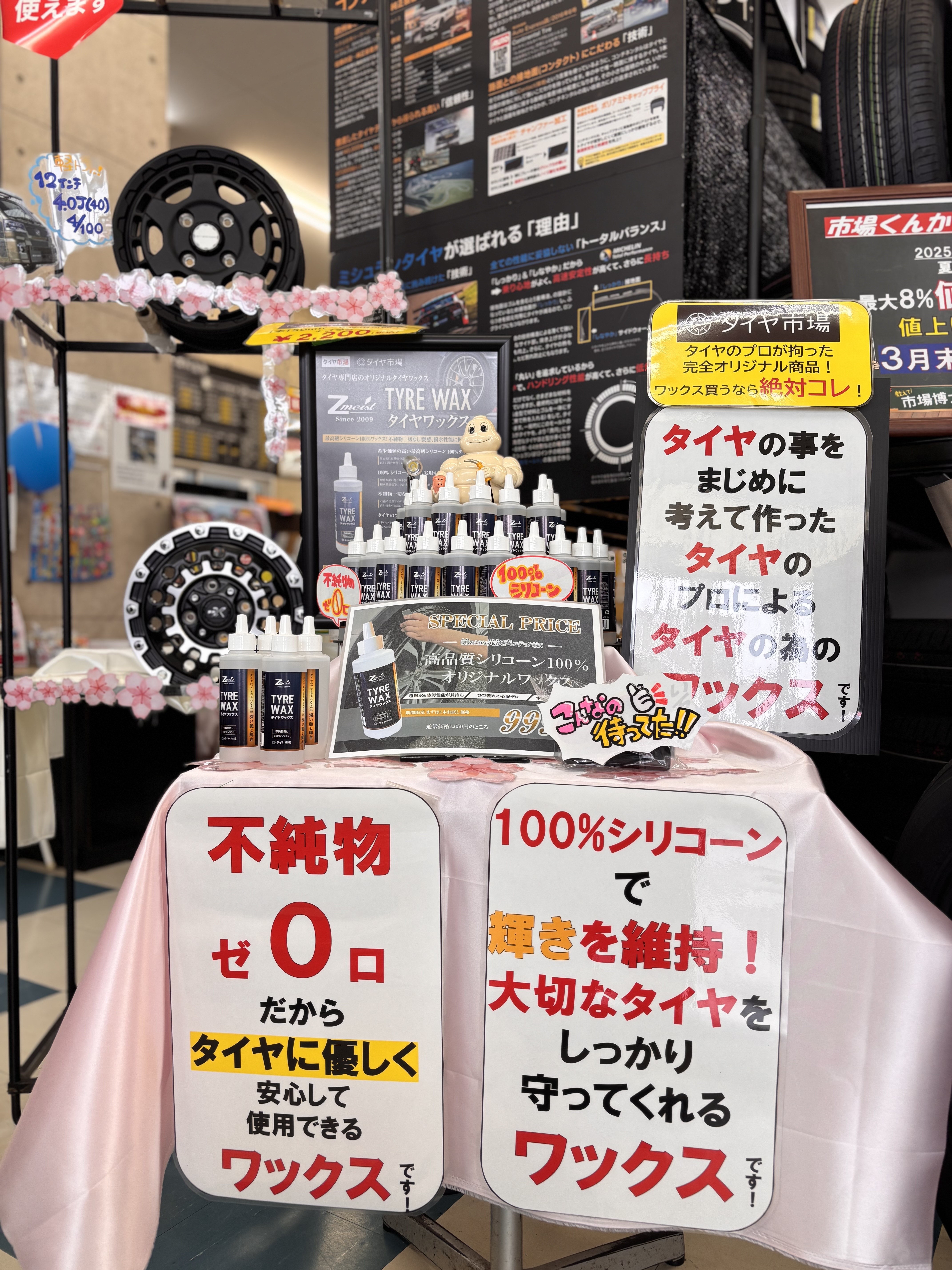 タイヤ市場オリジナルタイヤWAXを現在大特価でご案内しております!