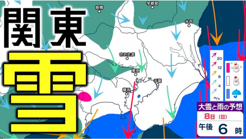 東京・埼玉・神奈川・千葉・山梨・群馬・栃木・茨城にも雪雲のかかる時間帯があることが予想されているため、