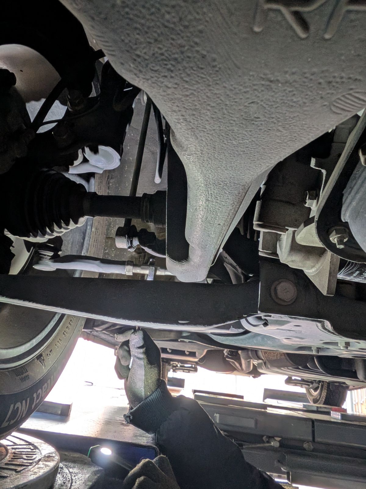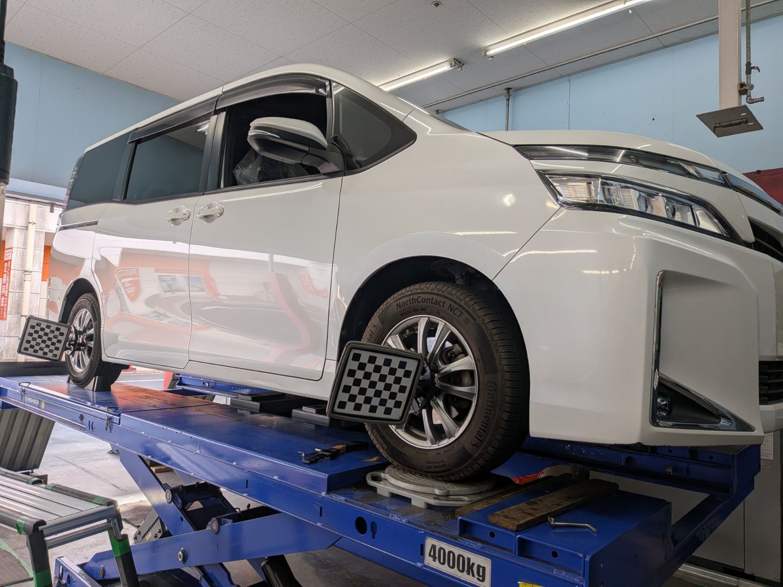 今日お越しいただいたのは、人気ミニバンのトヨタ VOXYのお客様。 「普通に走っているつもりなのに、なんだかハンドルが左に寄っていく気がする...」というご相談でした