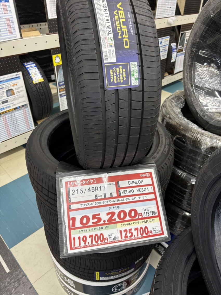 例えば、プリウス、CT200h、86、BRZ、カローラなどにぴったりのサイズ【215/45R17】