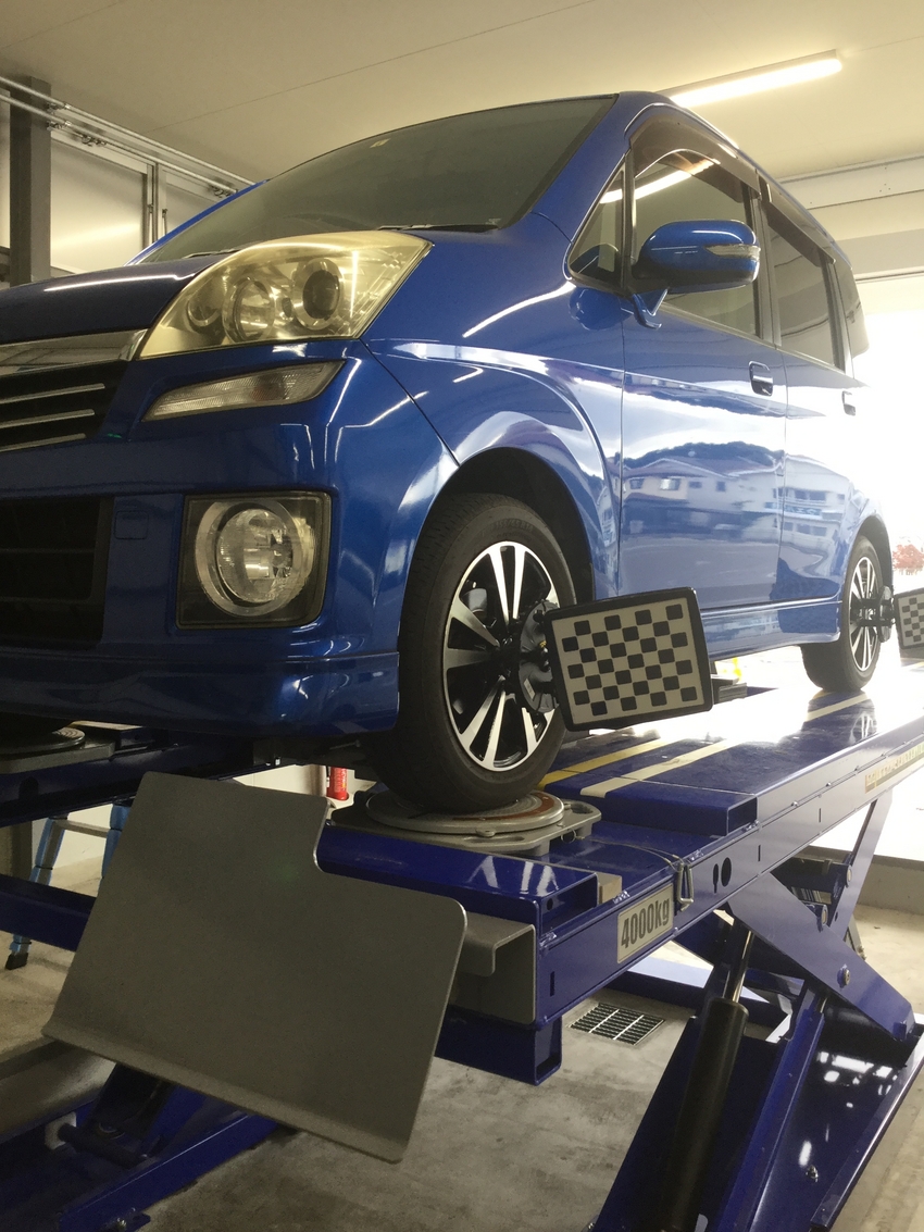 さて本日は、スバルのステラでお越しのお客様がアライメント調整に来られました。