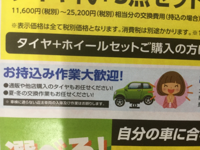 タイヤ市場では持ち込みタイヤの作業も大歓迎で作業いたします!!(22インチまで作業できます!)