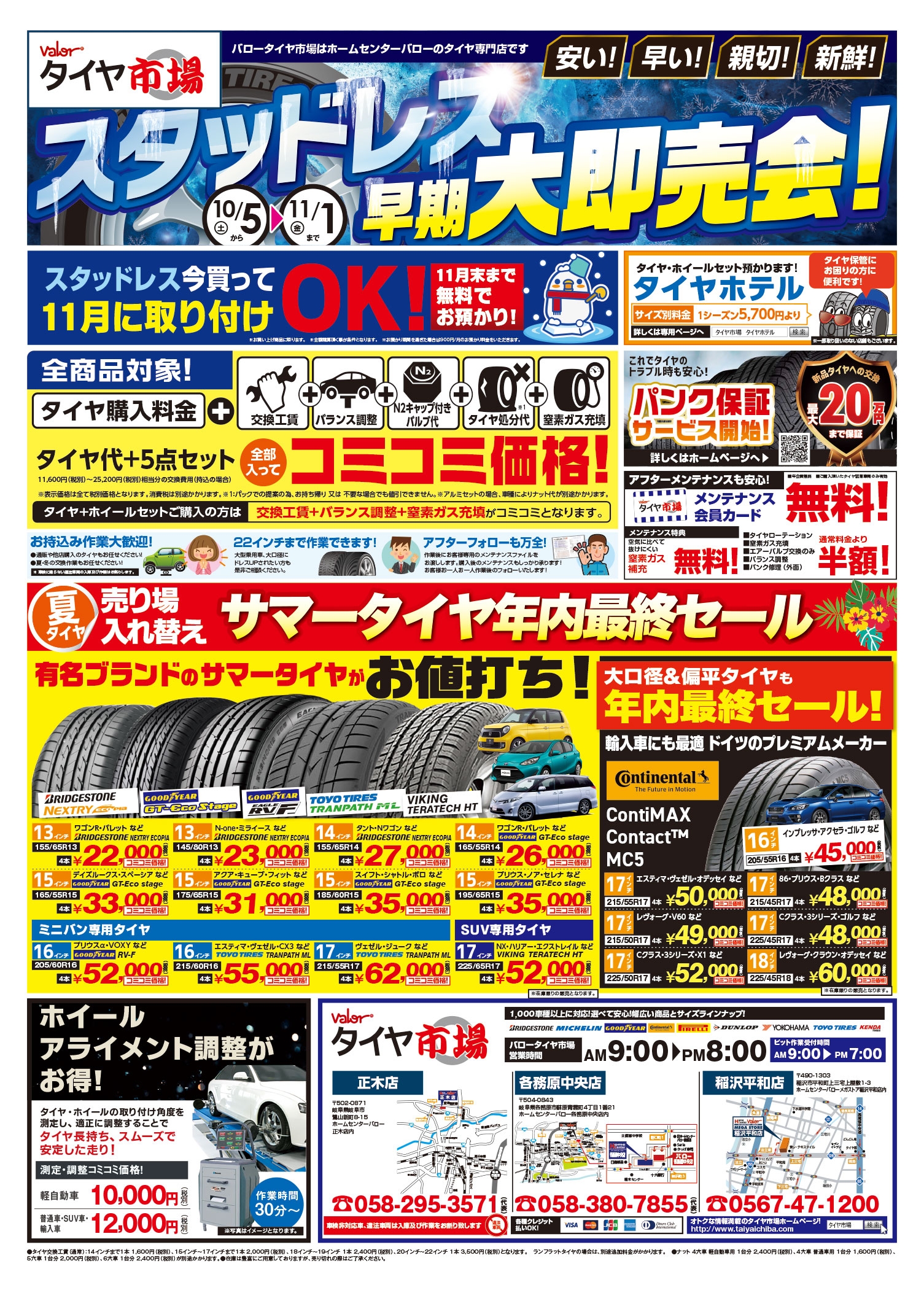 只今、バロータイヤ市場では11月1日(金)までスタッドレスタイヤをお値打ち価格にて販売中です!!