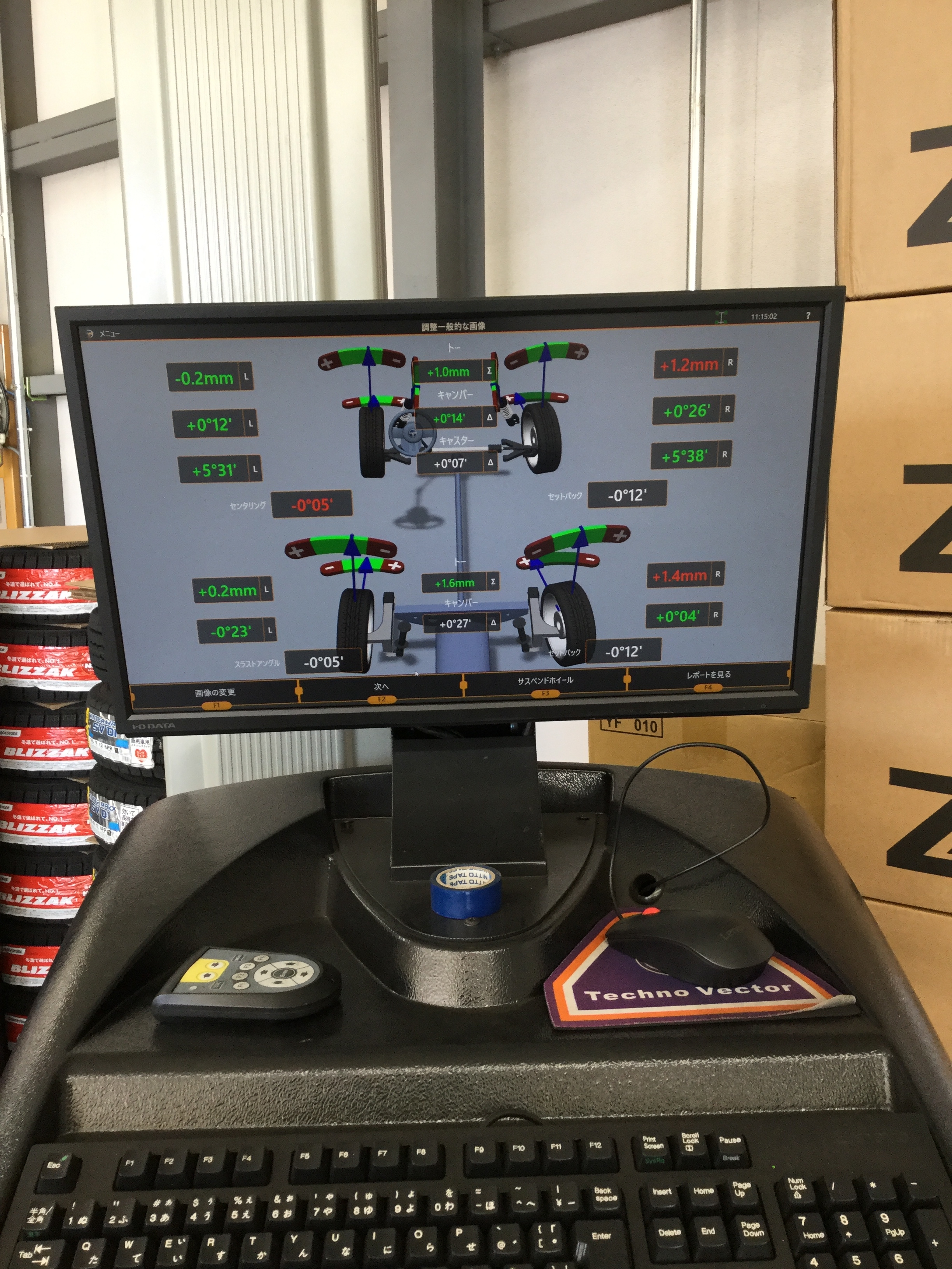 ☆今回はキャンバーが左右でズレ幅が少なかったので、フロント・リヤーのトー調整のみ行いました。