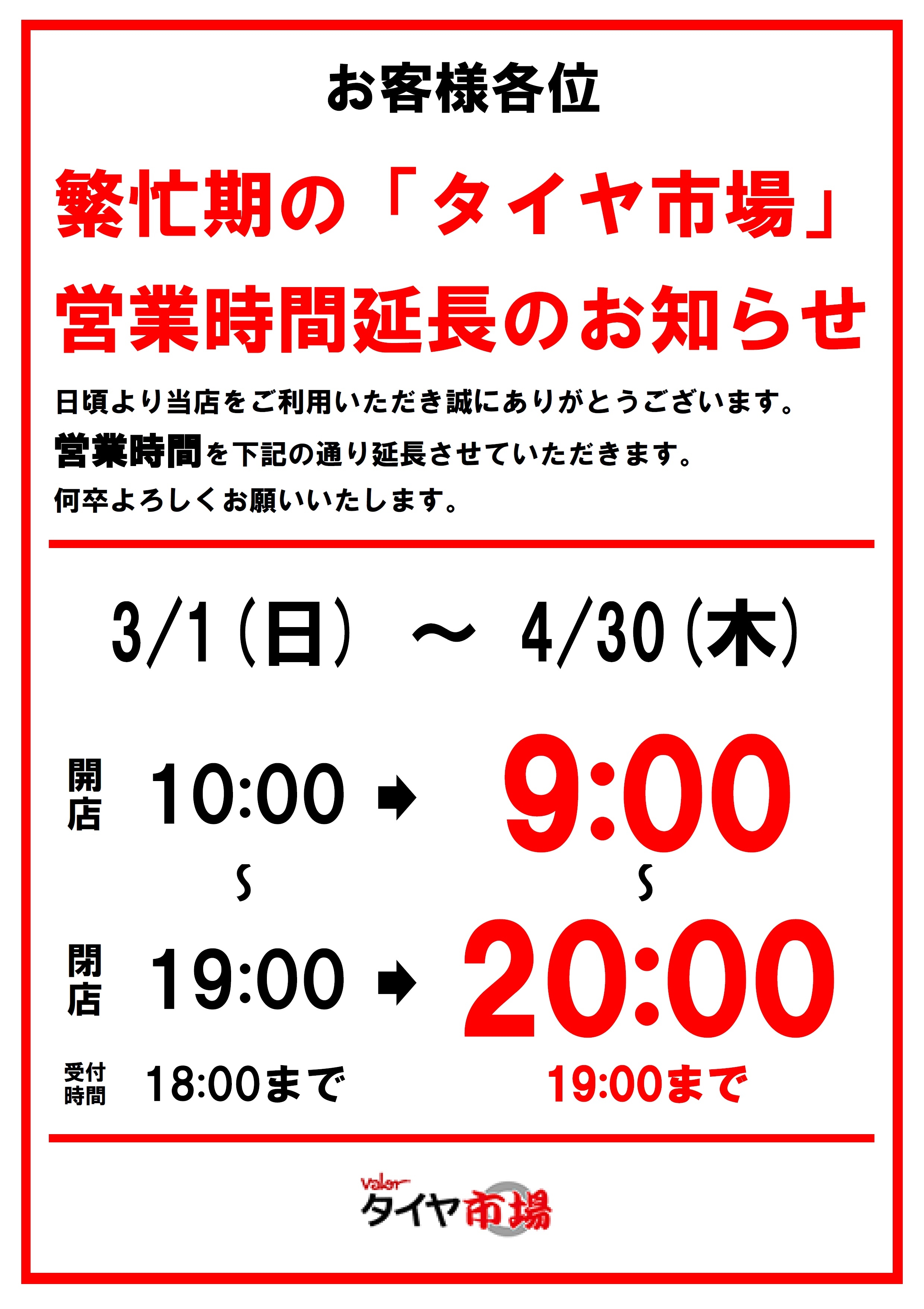 AM9:00~PM8:00(ピット作業受付:AM9:00~PM7:00)