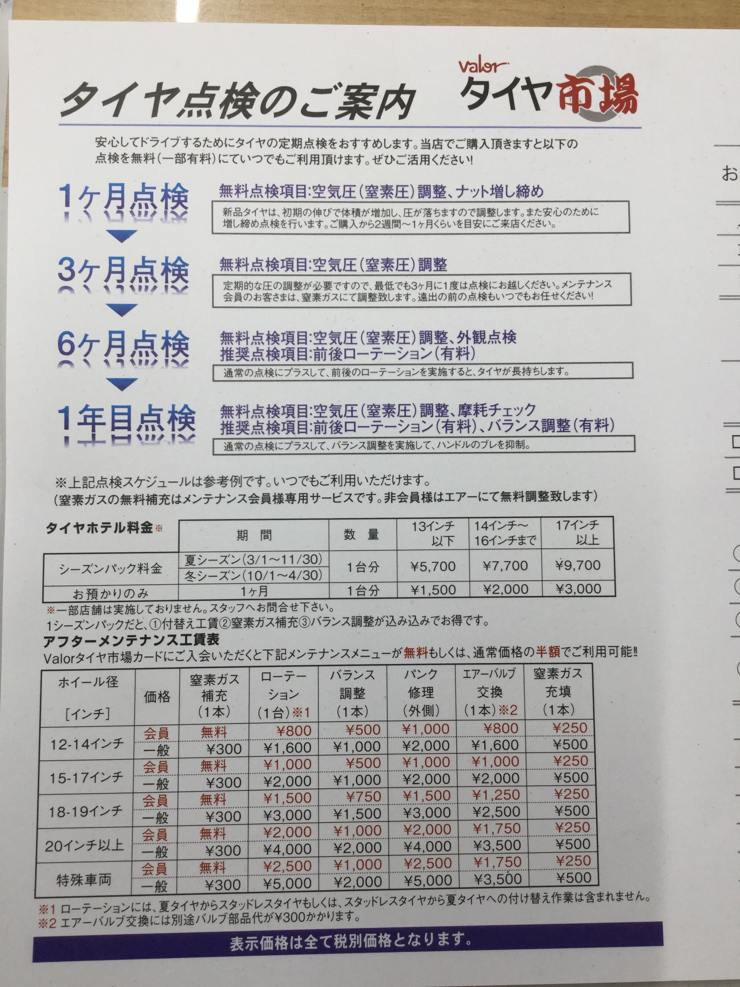 また、ローテーションなどのメンテナンス工賃も会員様価格で作業出来ます。