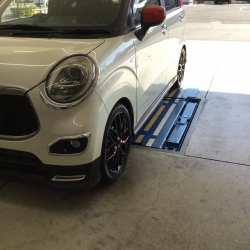 ピットに入れて作業を開始しようと車の状態を確認しましたら縁石にヒットした形跡が見られましたのでアライメント調整を追加で作業させていただきました。