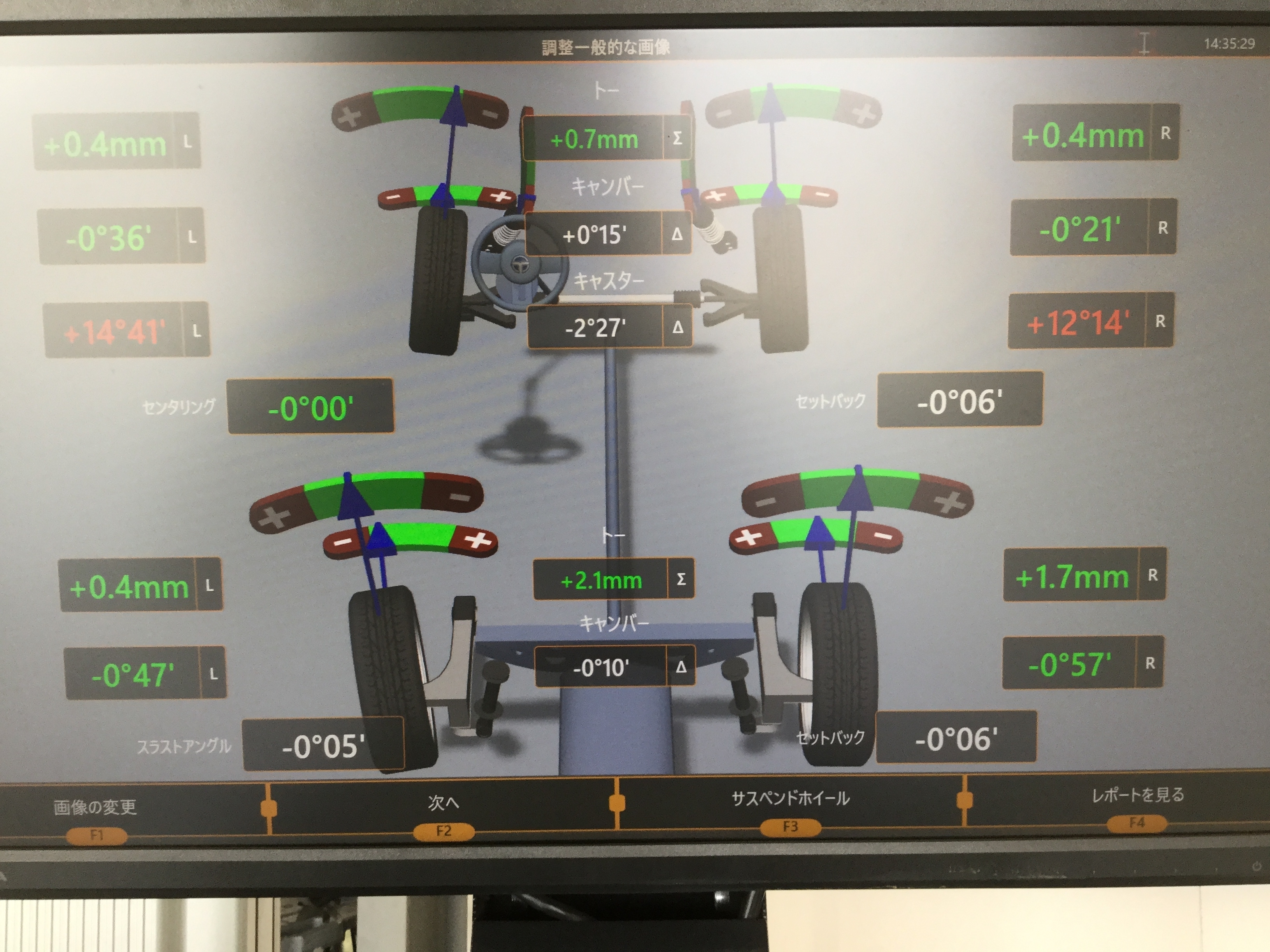 お客様も少し左に車が流れる感じがするということだったのでさっそく測定を開始!!