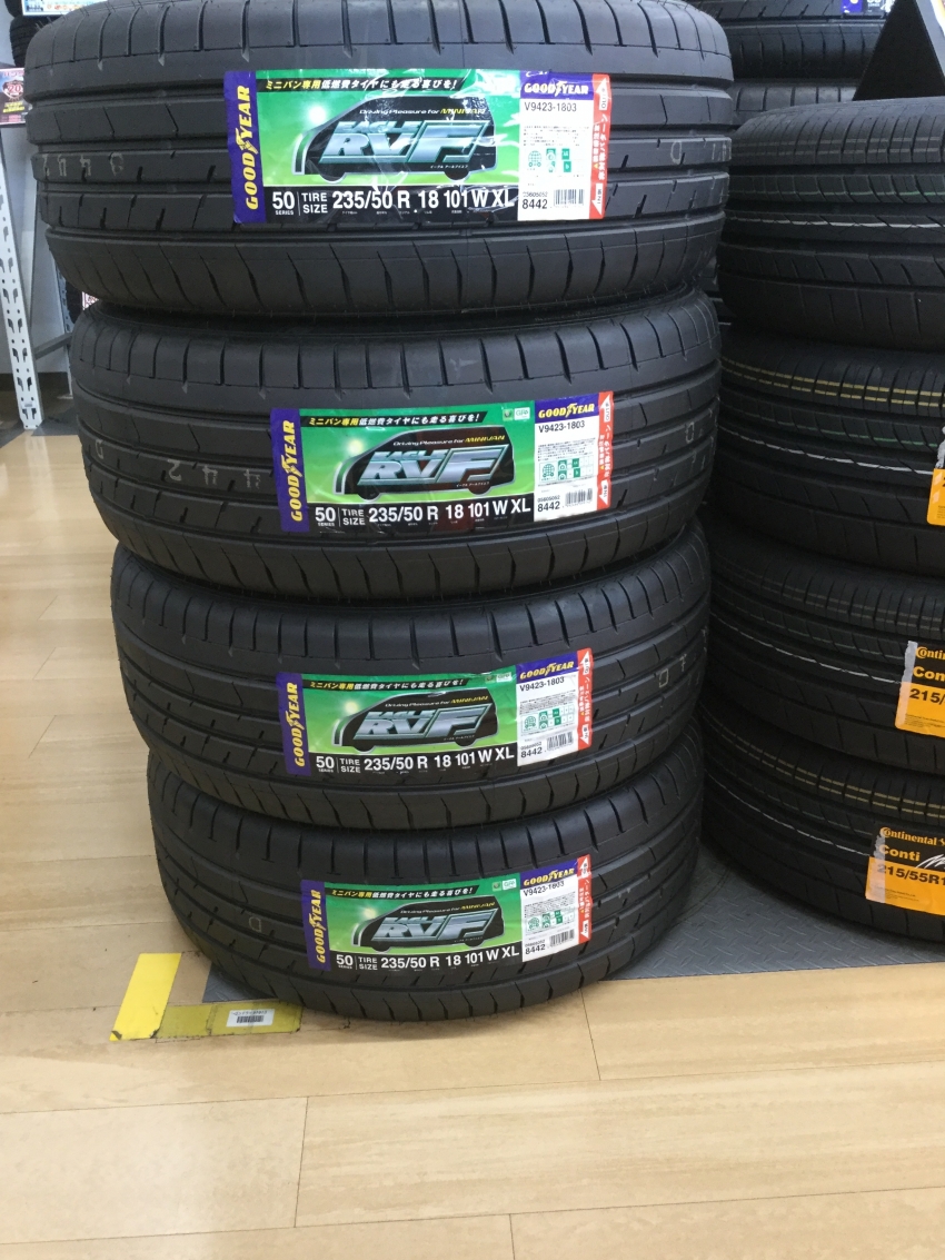 こんにちは、バロータイヤ市場正木店です。     今回は、「グッドイヤー EAGLE RV-F」をご紹介します。                              ミニバン専用であるこちらのタイヤは、          ミニバンの特徴である、車高が高く重心位置も高いため、コーナリング時にふらつきを感じやすく        特にタイヤの外側ショルダー部への負担がかかります。                               この「ふらつき」や「偏摩耗」を抑制する左右非対称パターンの設計です