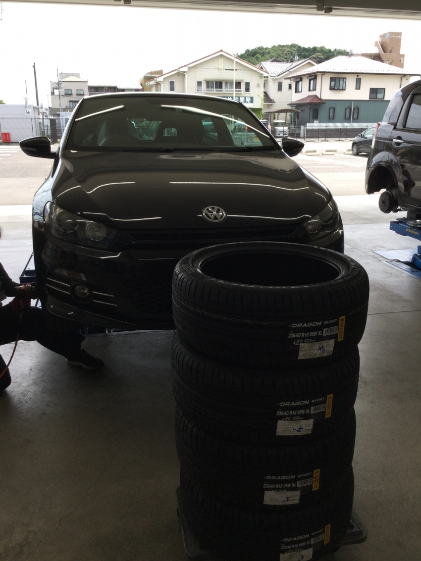 こんにちは、バロータイヤ市場正木店です。今日は、VW シロッコのタイヤ4本交換とハブ防錆・アライメント作業をさせて頂きました!