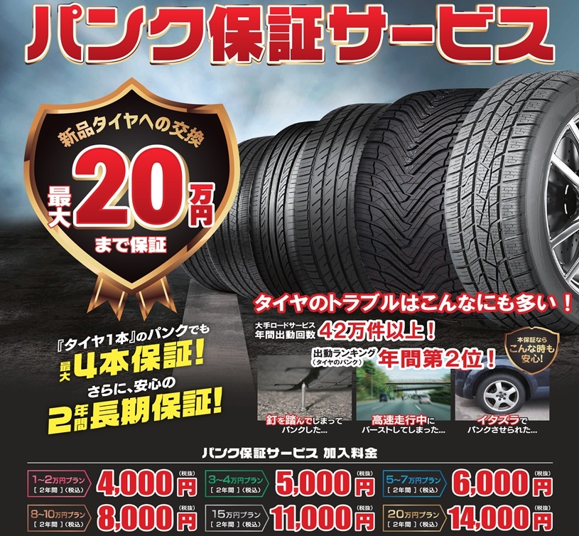 パンク保証はタイヤ購入作業時にしか加入できませんのでご注意ください!!