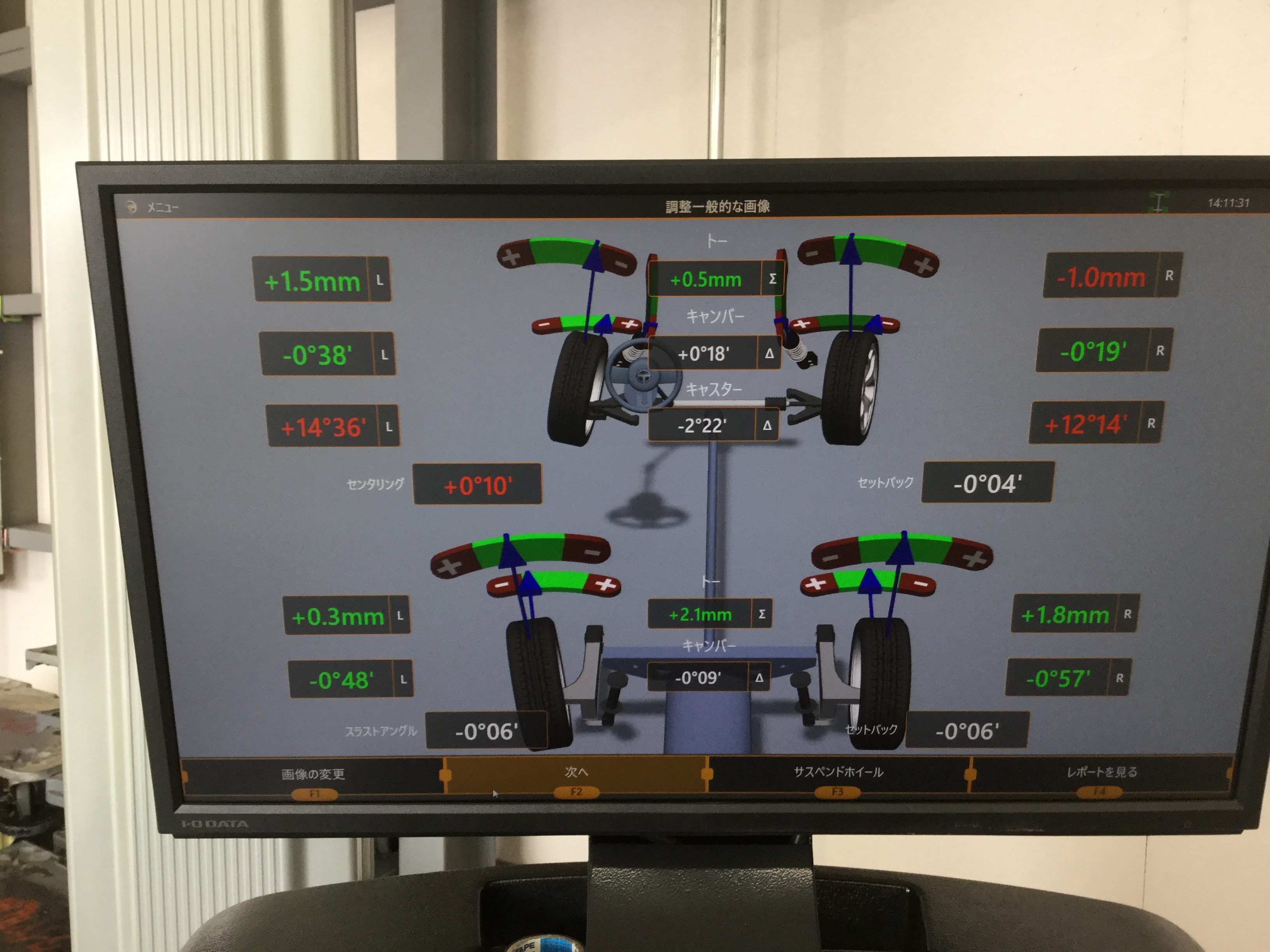 ※基本はフロントとリアのトー角とキャンバー角を調整します。(車種によって調整箇所が変わります。)