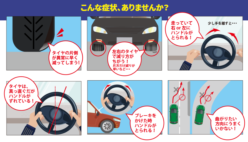 車高を下げた車・車をぶつけてしまった・ハンドルセンターがずれてるなど、こんな症状を感じた事ありませんか??