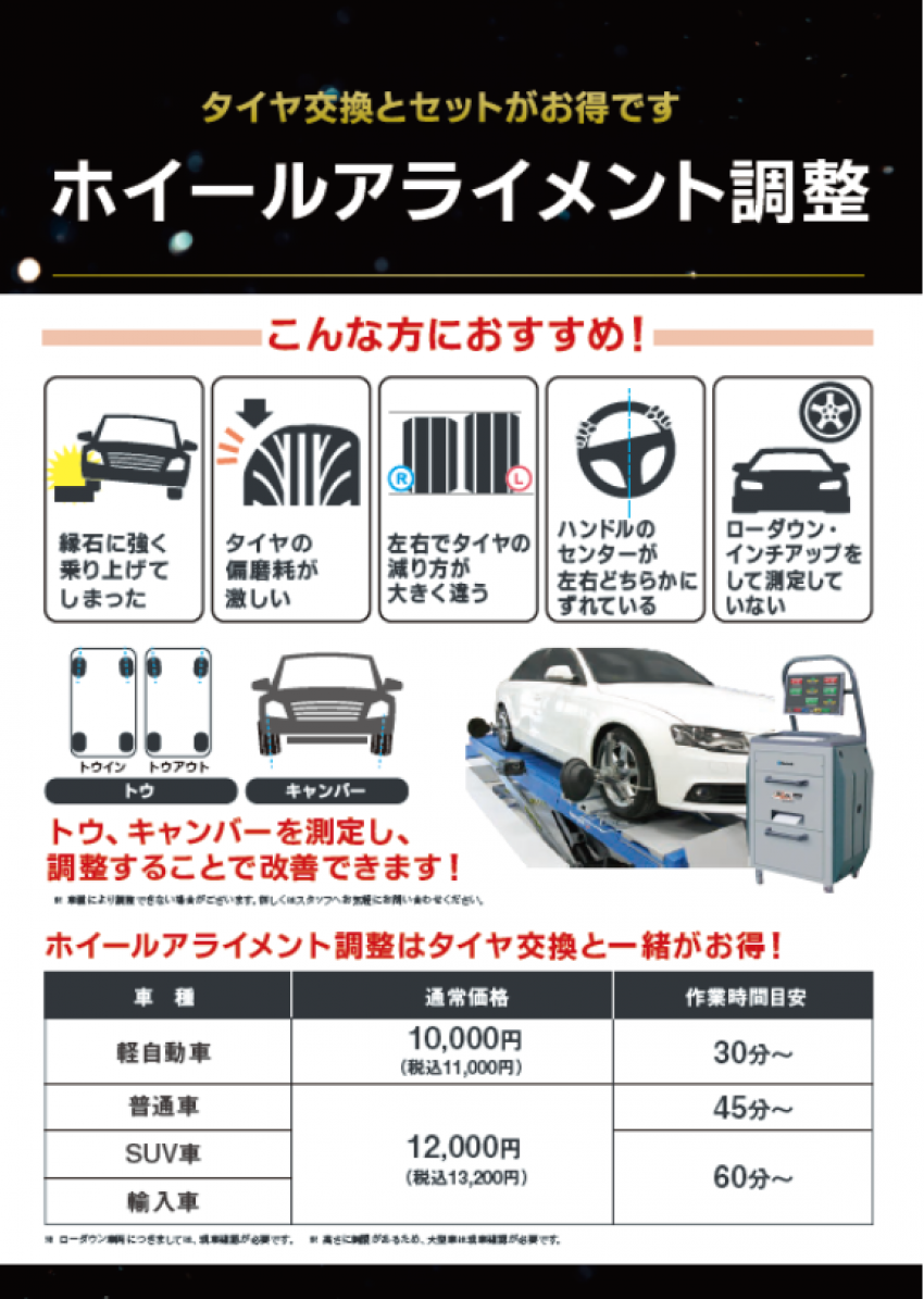 バロータイヤ市場のアライメント測定&調整が安い!!
