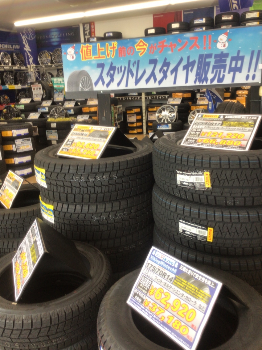 只今、当店では値上げ前にお値打ちなスタッドレスが、続々と入荷されております٩( ''ω'' )و