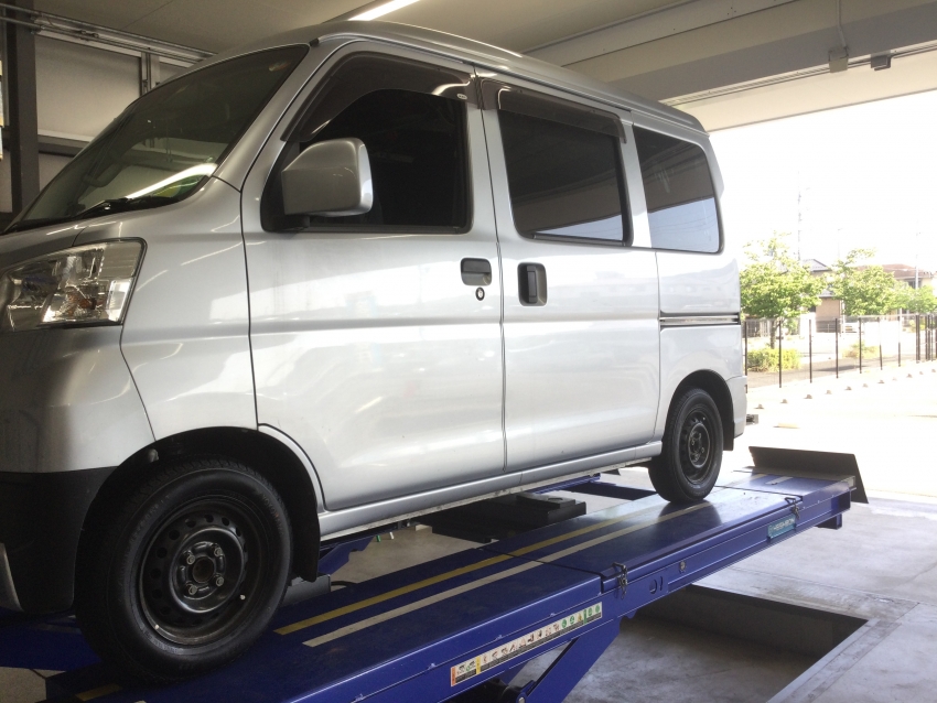 本日は、ダイハツ ハイゼットカーゴのアライメント調整をさせていただきました。