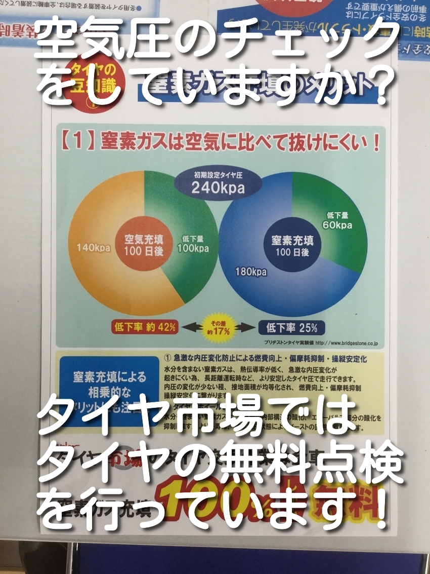 当店では、4本交換の際、通常の空気の代わりに、窒素ガスを入れさせていただいています。