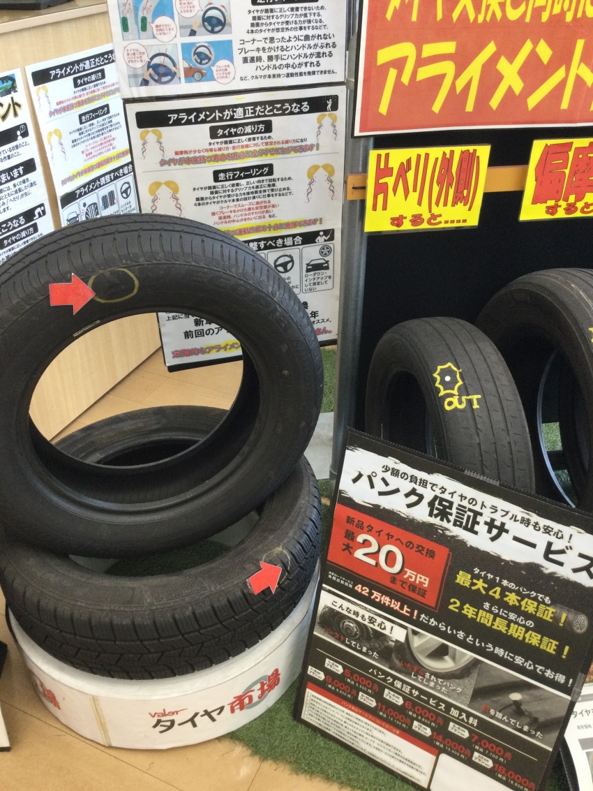 当店では、タイヤを購入された際にパンク保証に加入することが出来ます。料金はタイヤの金額ごとに変わってくるのですが
