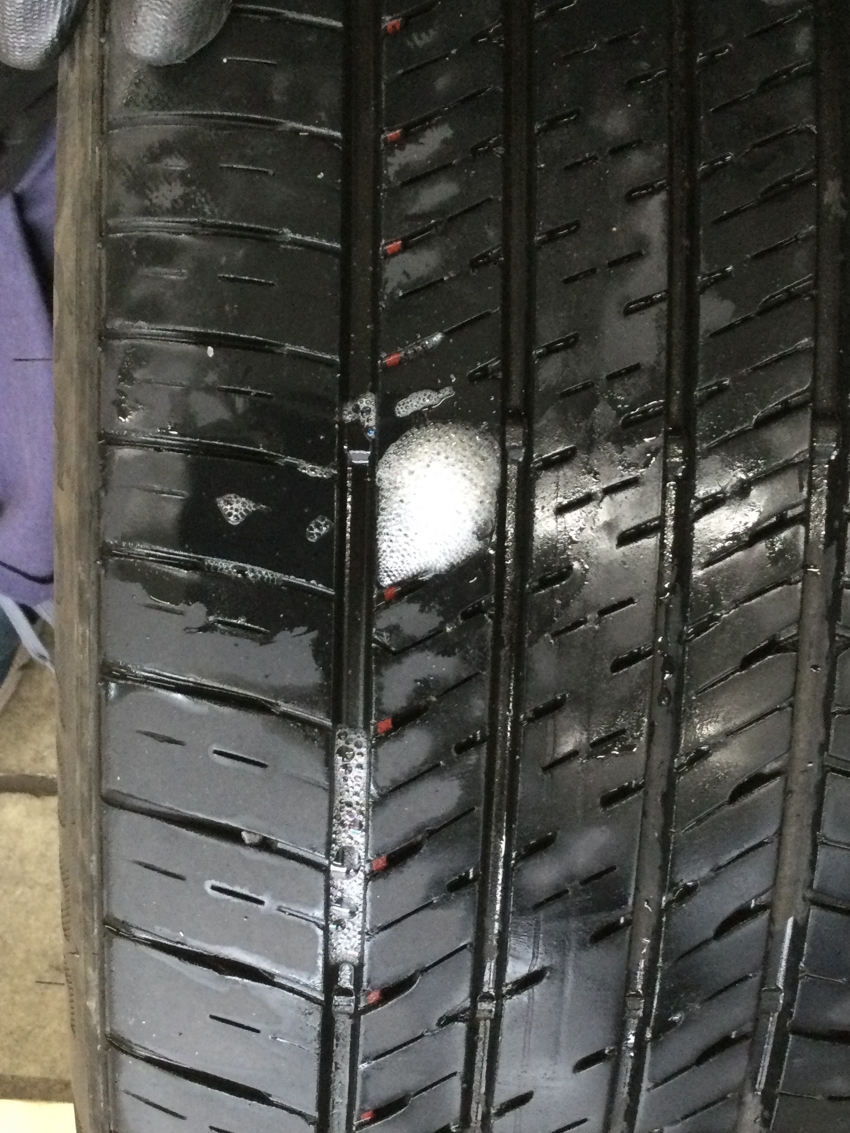 これが、側面に近い部分だったり、異物が斜めに刺さっていたりすると修理が出来ず、交換になります。