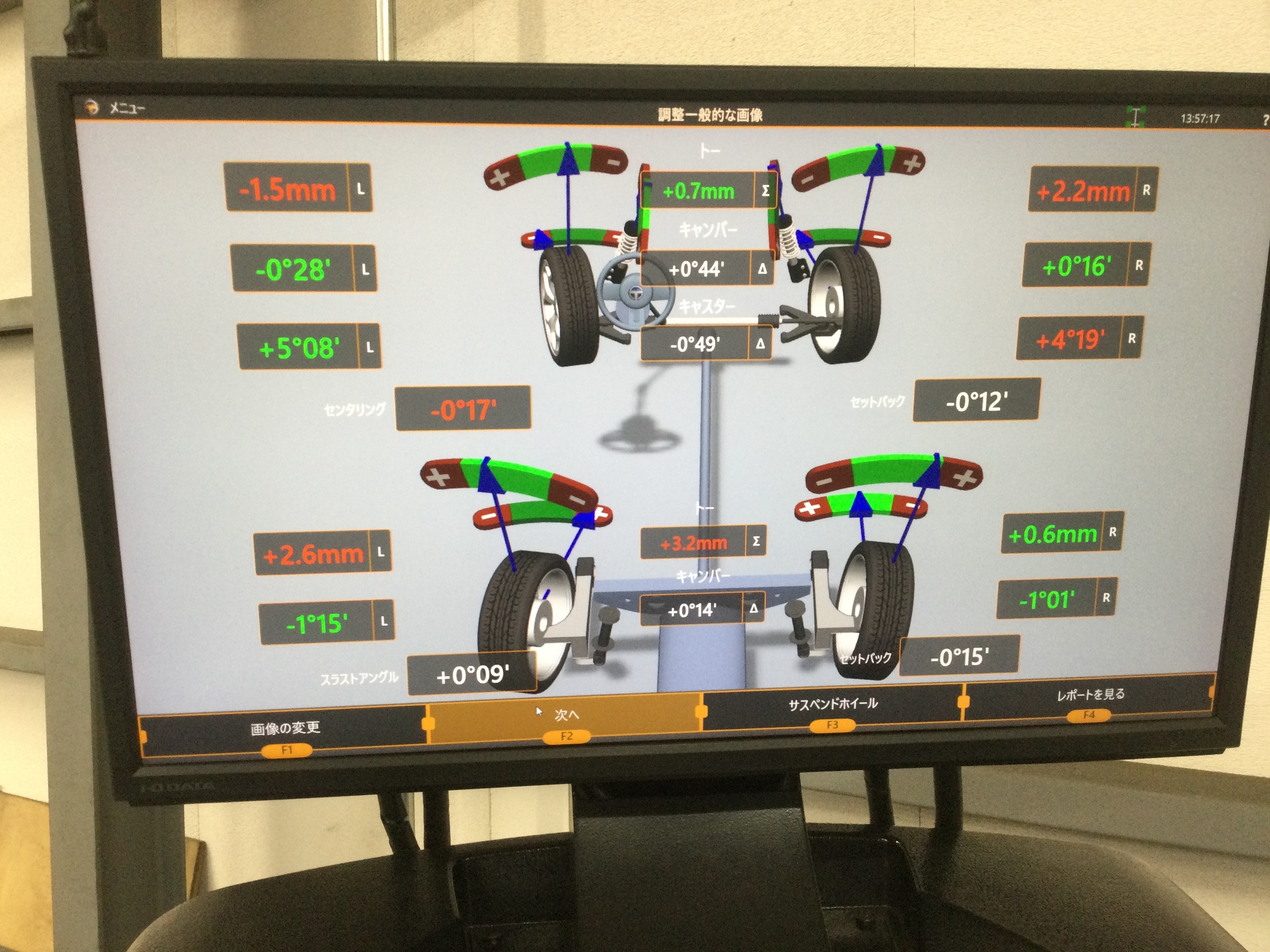 IMG_4228[1].JPGコチラのお車を測定したところ、フロントのタイヤが両方とも左向きになっていました。