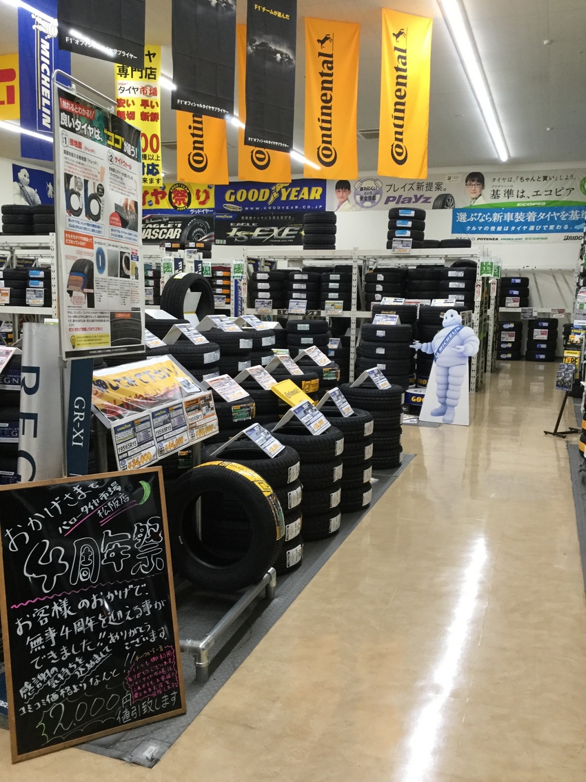 バロータイヤ市場 松阪店では現在4周年祭を催しております!