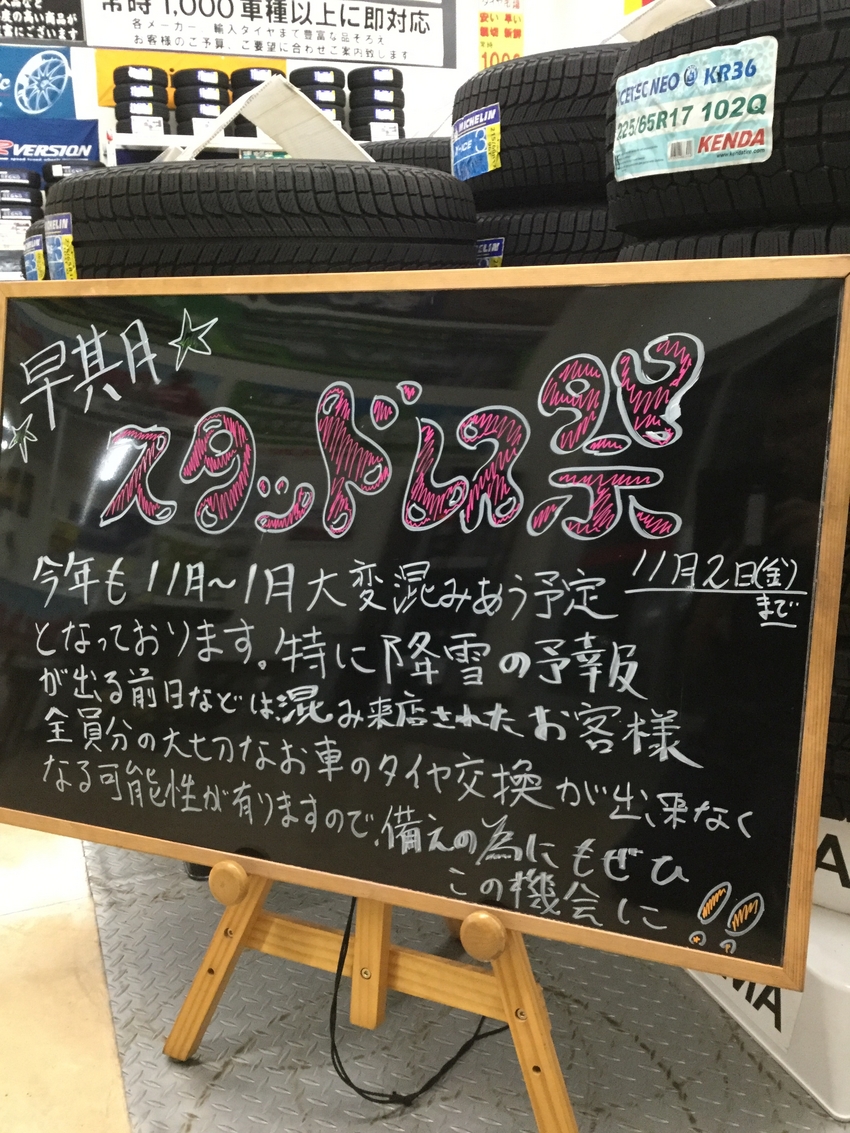 遅くなりましたが、本日より、早期スタッドレス祭開催中です!!