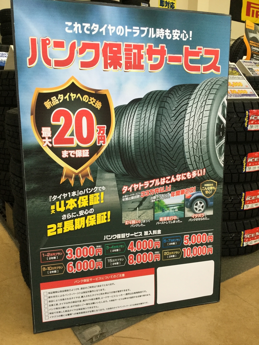 パンク保証に関しまして、ご興味等ございましたら、