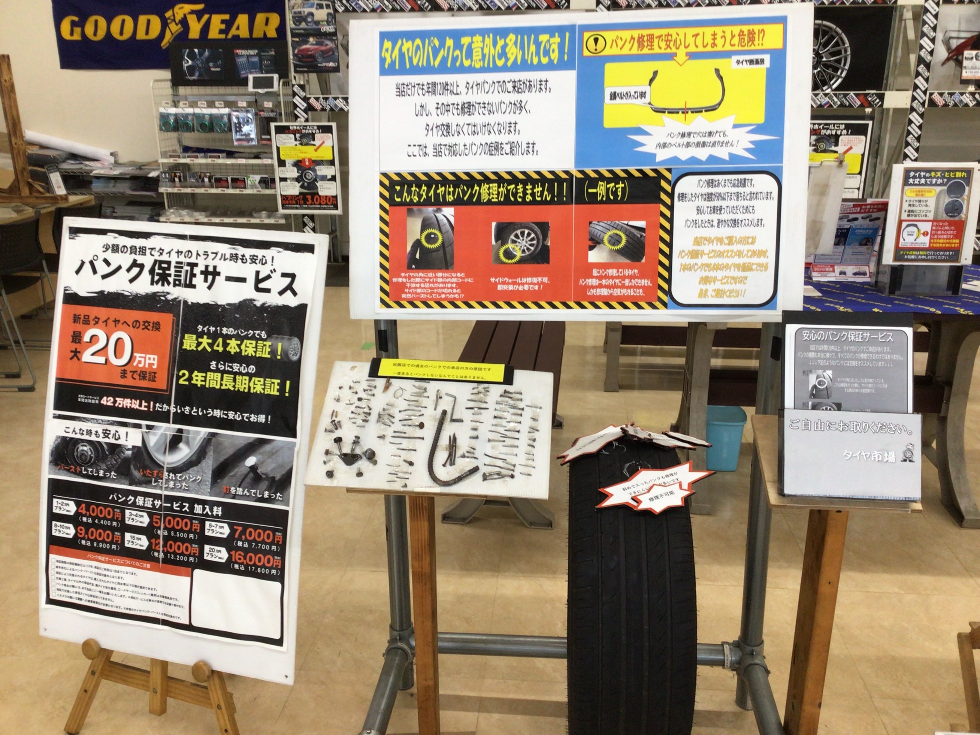タイヤを4本ご購入の方にしか加入ができません!パンクしたさいに、1本新品というバランスの悪いということもなくなり、車にもいいので、4本ご購入の際には、パンク保証もあわせて、ご検討くださいませ。