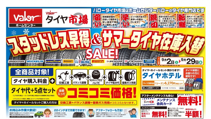 まだまだ スタッドレス早得&サマータイヤ入れ替えセール 開催中です!