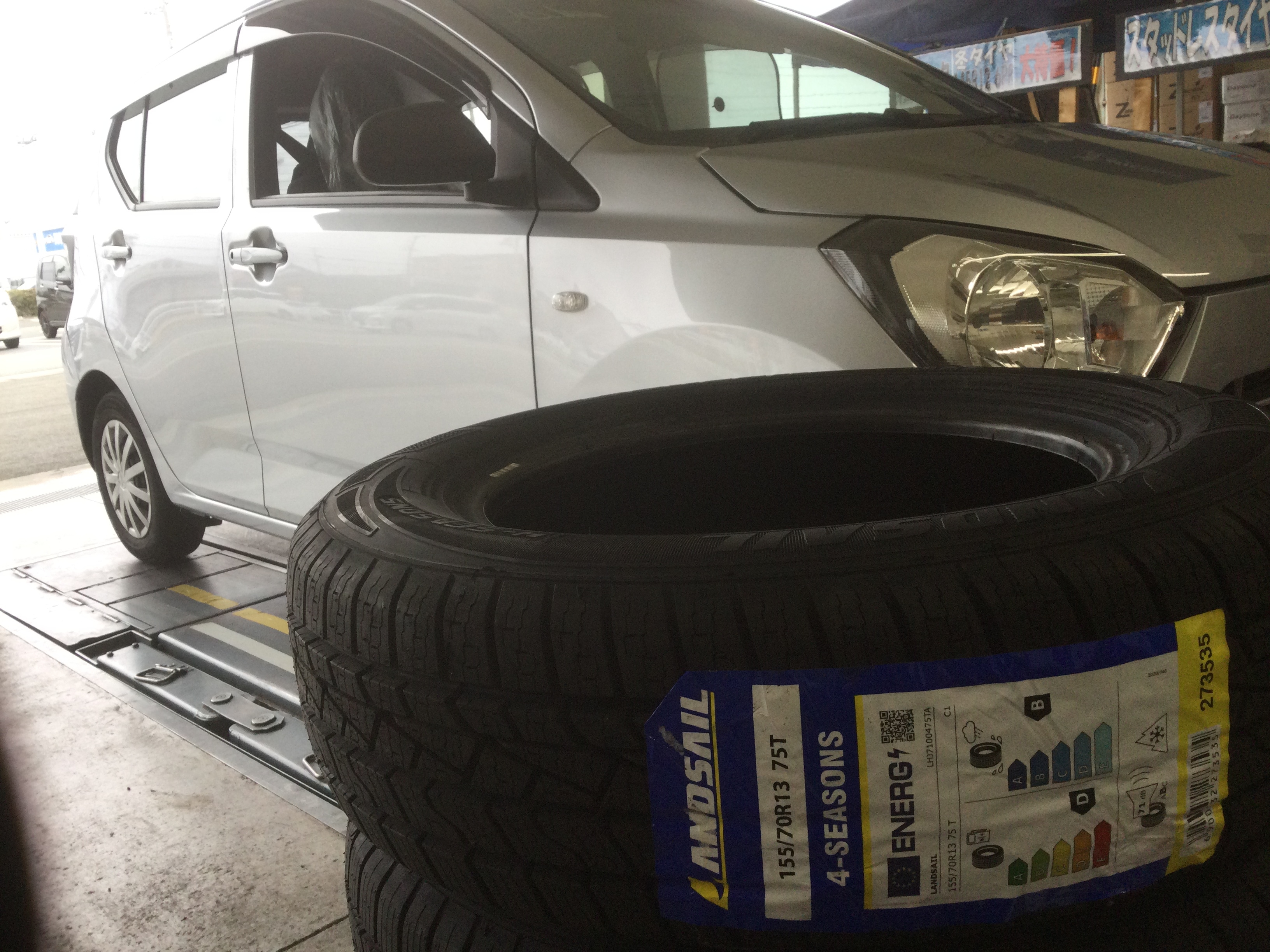 本日は、ミライースにオールシーズンタイヤ取付させて頂きました。