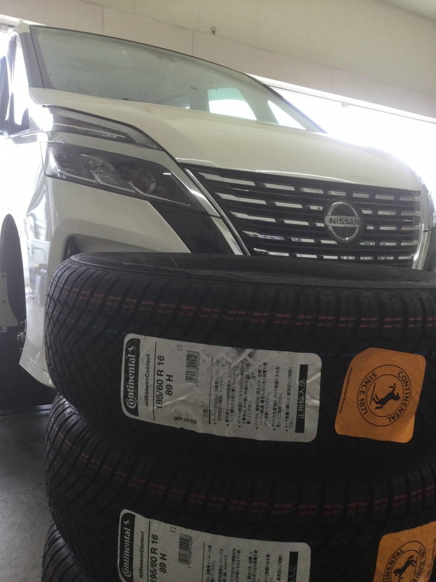 今回は、セレナに欧州メーカーのオールシーズンタイヤを取付させて頂きました!
