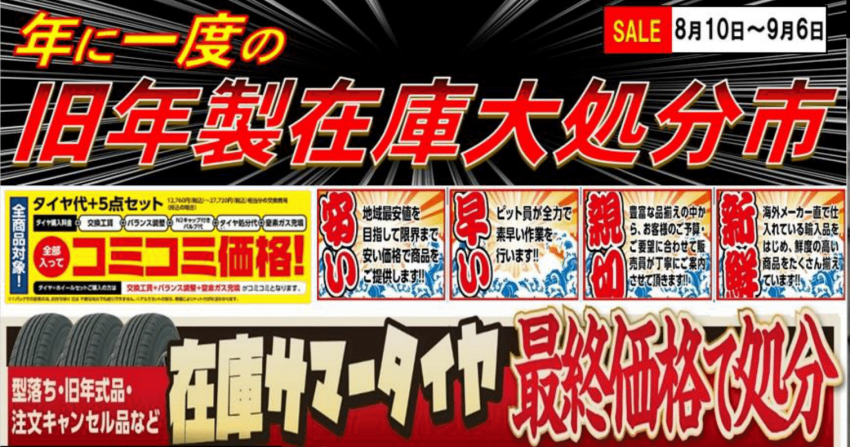 緊急号外! 旧年製サマータイヤ在庫大処分市!!
