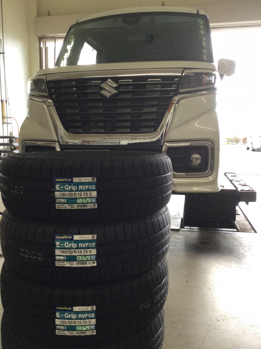 今回はスペーシアカスタムのタイヤ交換作業をご紹介させて頂きます!