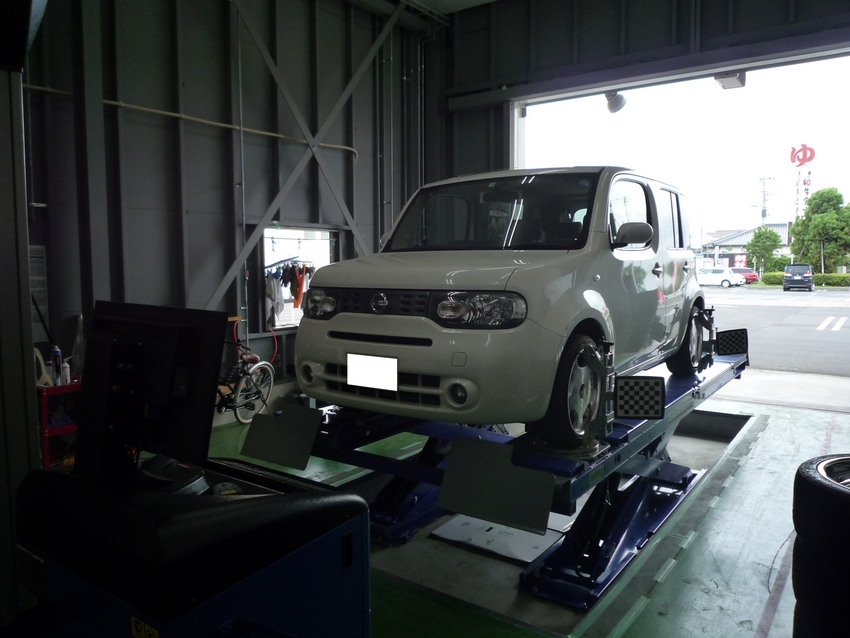 実はこのCUBE、ルーフ以外全て貰い事故で修復歴の有るとんでもない車なんです。何とそれなのにアライメント調整していないとの事!!