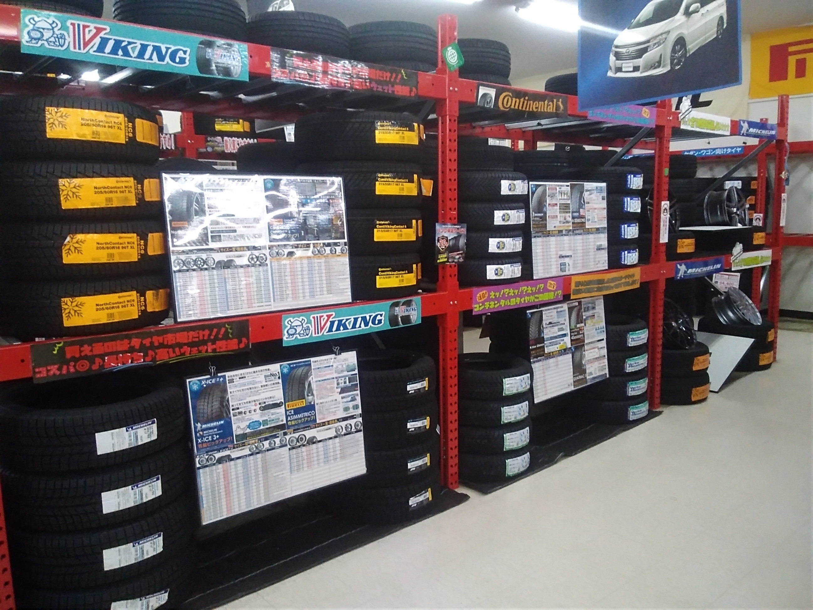 そんな訳で、そろそろスタッドレスシーズンなので店内を模様替えしております。